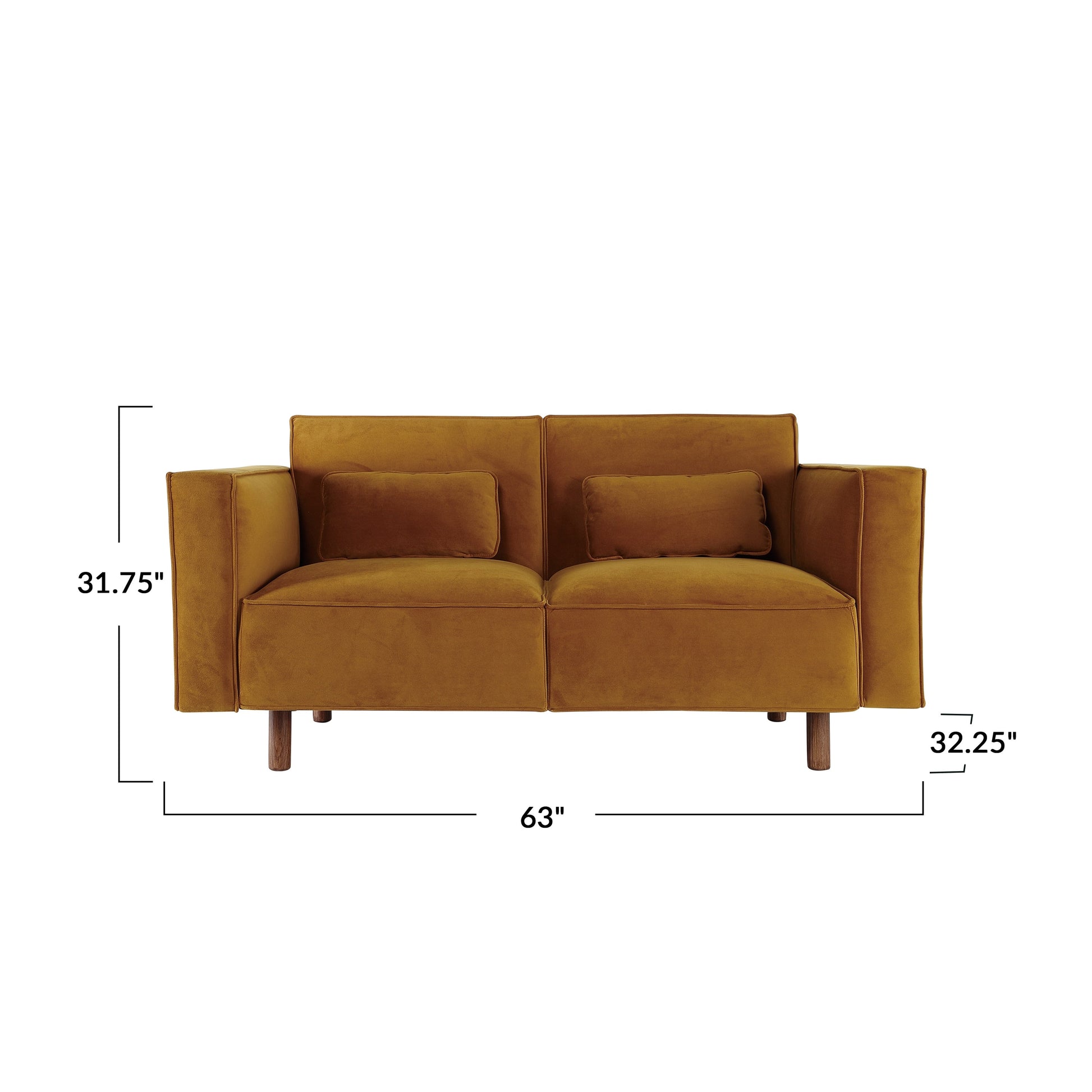 This Chartreuse Fabric Upholstered Sofa is a vibrant and stylish addition to any home. Featuring sleek wood legs, it perfectly complements modern, mid-century modern, boho, and cottagecore interiors, especially those with neutral tones or earthy palettes. Comes with easy-to-follow assembly instructions for quick setup in living rooms, lounges, or cozy corners, adding a pop of color and comfort. Crafted from durable polyester fabric, high-density foam, solid wood, and durable metal, ensuring long-lasting comfort and durability. Measuring 63 inches in length, 32.25 inches in width, and 31.75 inches in height, this sofa combines functionality with a bold design. With its sturdy construction and comfortable cushioning, this sofa is both stylish and practical for everyday use.