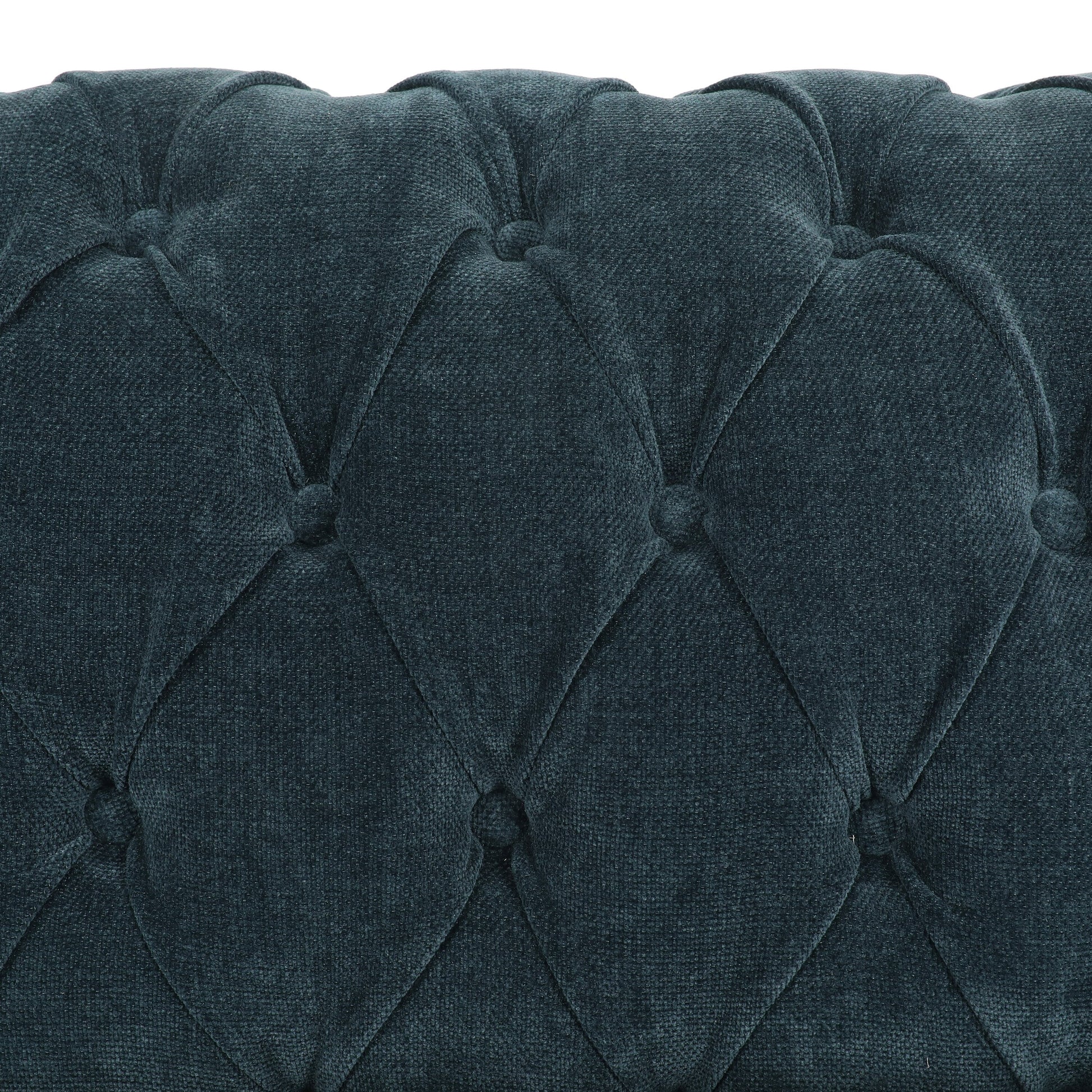 CHESTERFIELD INSPIRATION: Designed with the traditional Chesterfield style in mind, this sofa hits the key elements with smooth upholstery, deep button tufting, scrolled tuxedo arms, and bun feet.