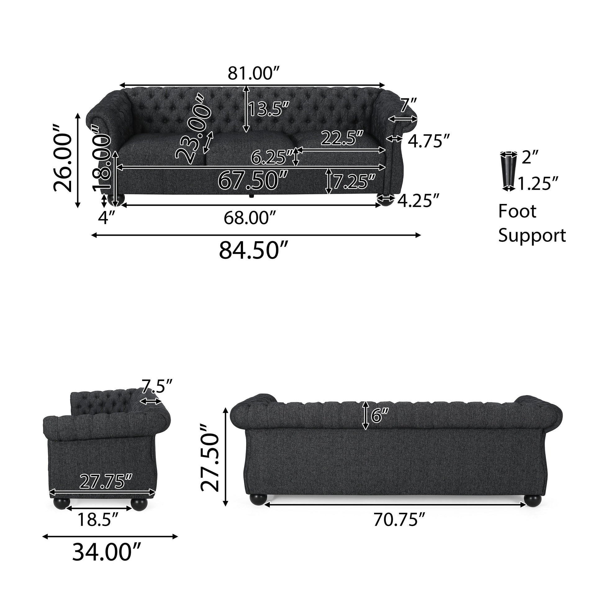 Dimensions: 34.00 inches deep x 84.50 inches wide x 27.50 inches high
