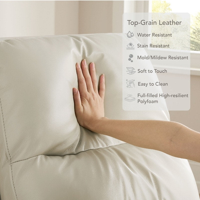 Upgrade your comfort with our Power Swivel Glider Recliner Chair—perfect for the living room, nursery, or home theater. This modern leather recliner chair features a smooth 270° swivel, gentle gliding motion, and easy power recline for customized relaxation. Ideal as a nursery recliner chair or home theater seating, it offers a plush memory foam seat and genuine leather where it counts for a soft, easy-to-clean finish. Built for everyday use, it includes dual USB/Type-C ports, side pockets, and a sturdy Leggett Platt mechanism supporting up to 350 lbs. A stylish, space-saving swivel rocker recliner that's made for adults who want function, comfort, and convenience in one sleek chair.