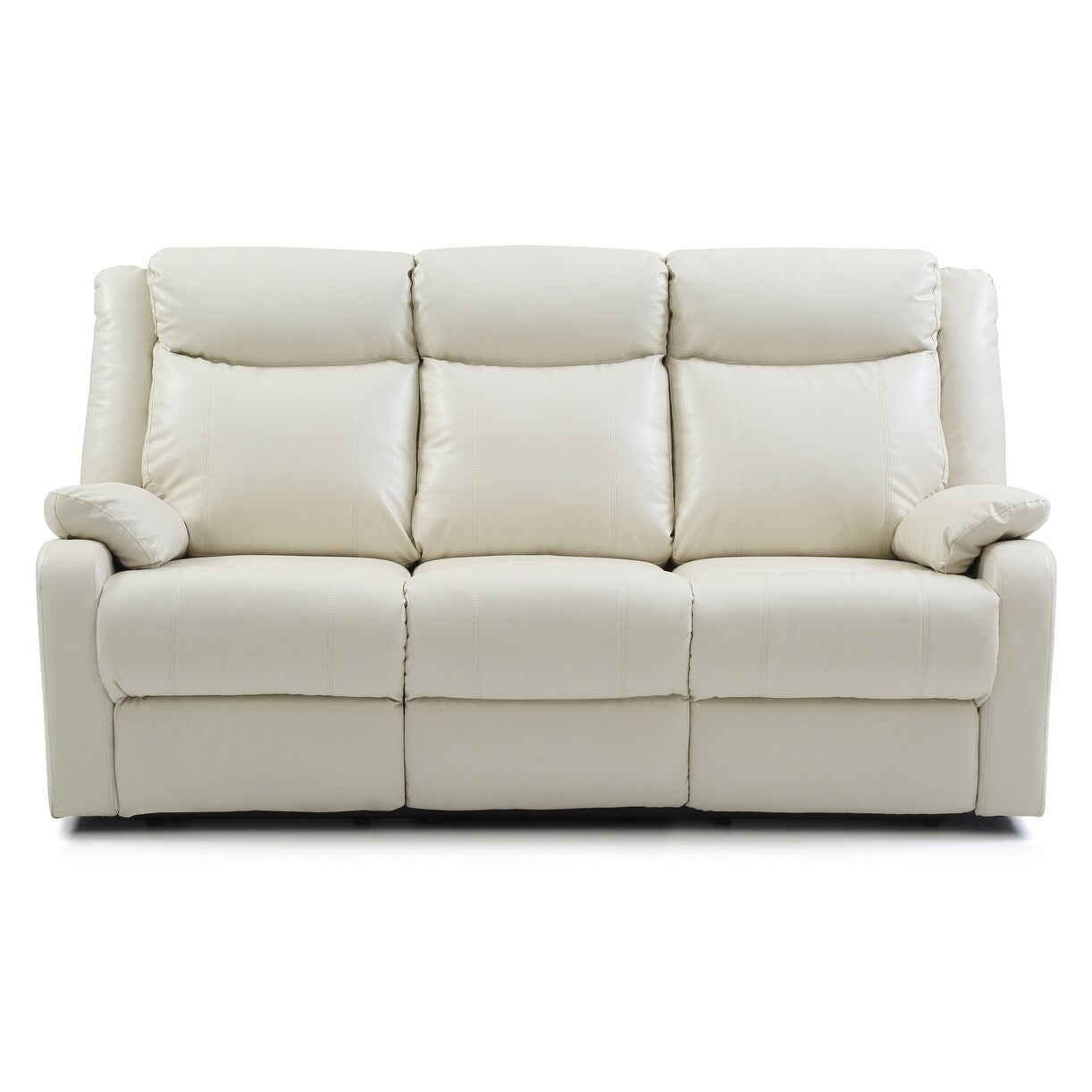 Faux leather 3-Seater Reclining Sofa with Pillow Top Arms - 76 - White