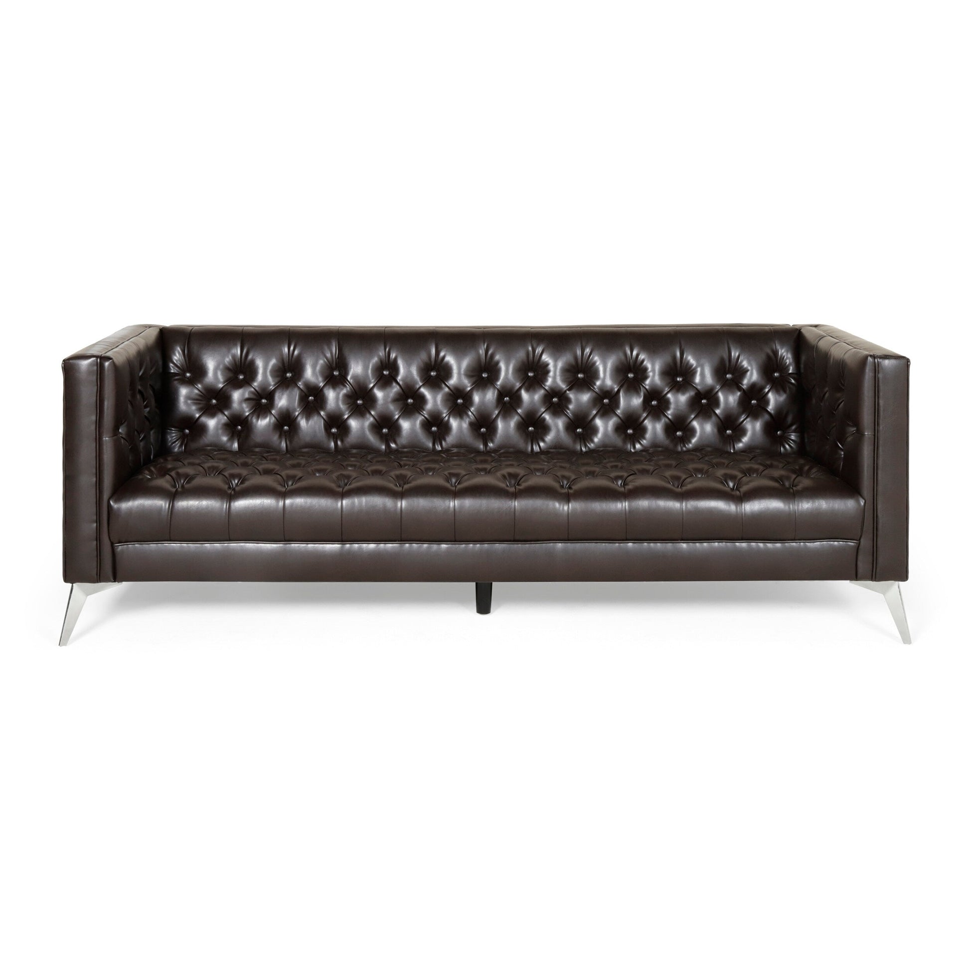 Faux Leather Button Tufted 3-seater Sofa with T-shaped Iron Legs