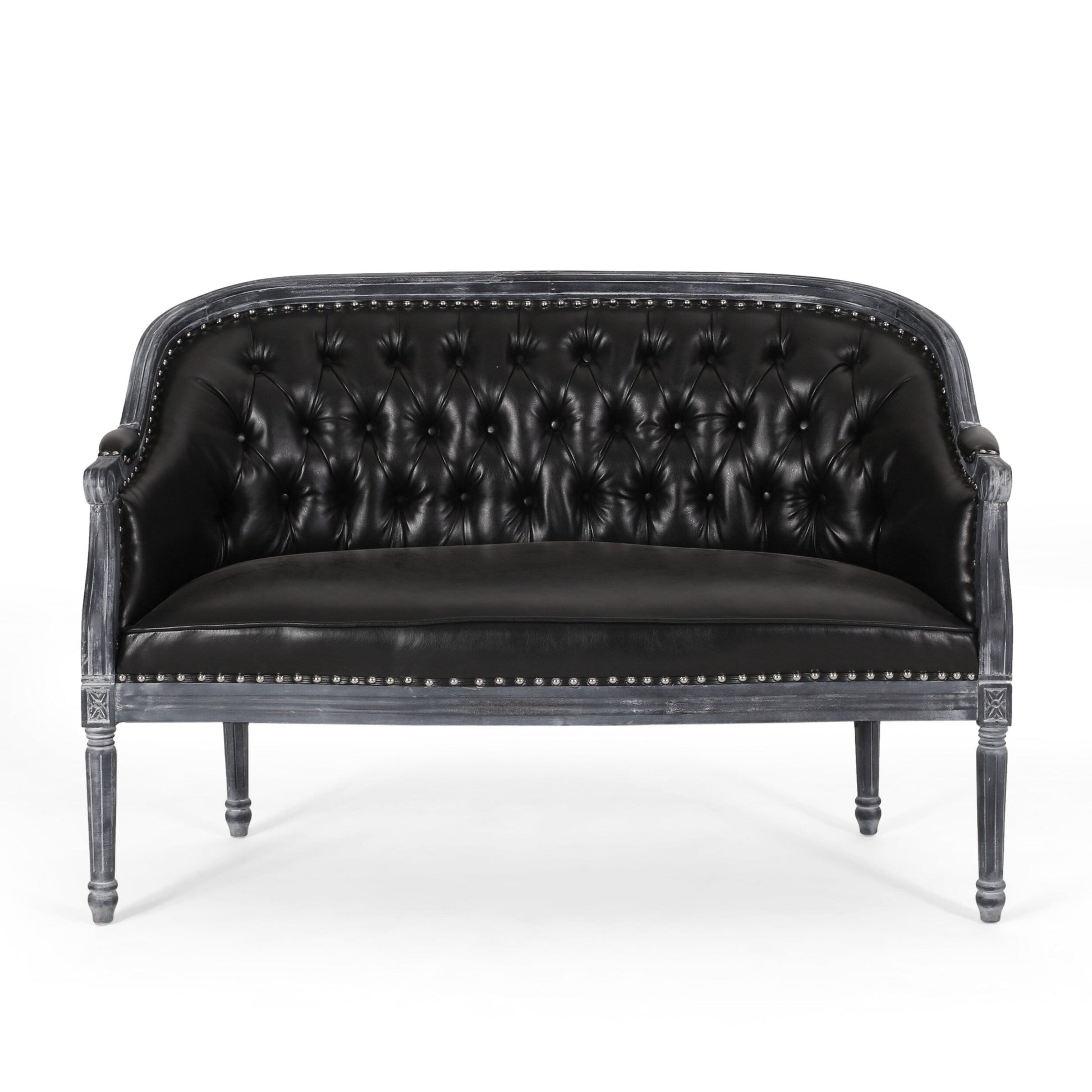 Exquisite Style, Overflowing Charm, and Exceeding Comfort: Our beautifully tufted loveseat has it all. This piece features old-world elements such as deep button tufting, gracefully scrolled arms, and stunning nailhead accents, creating a wonderful French country aesthetic.