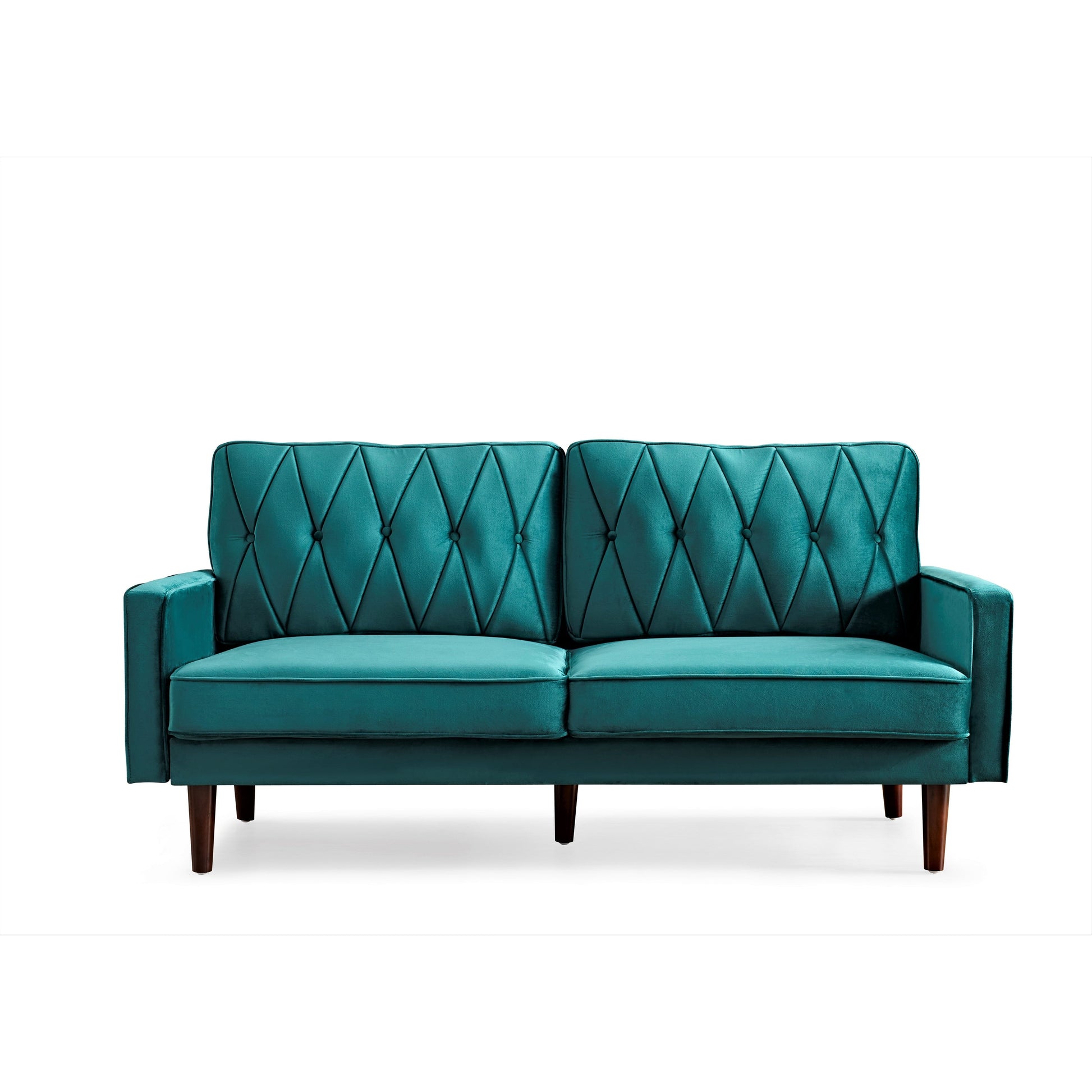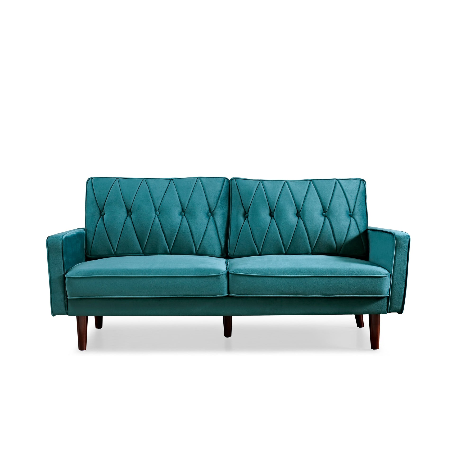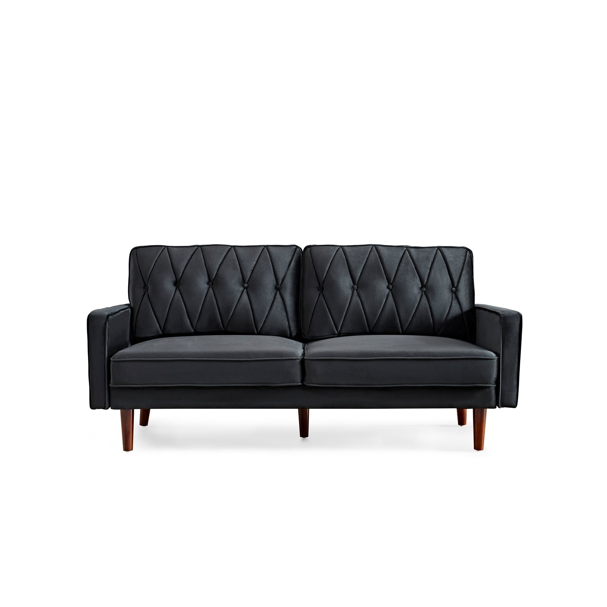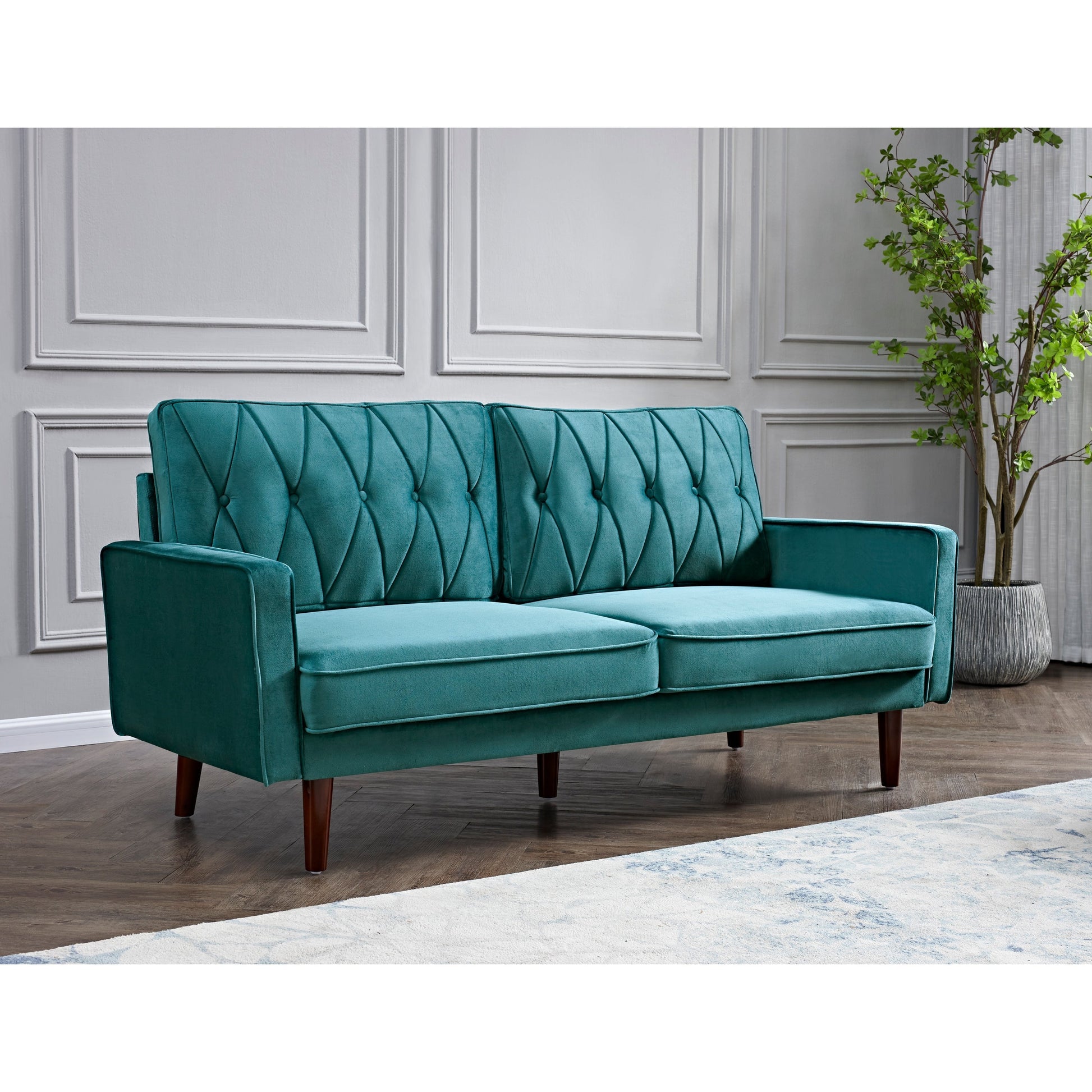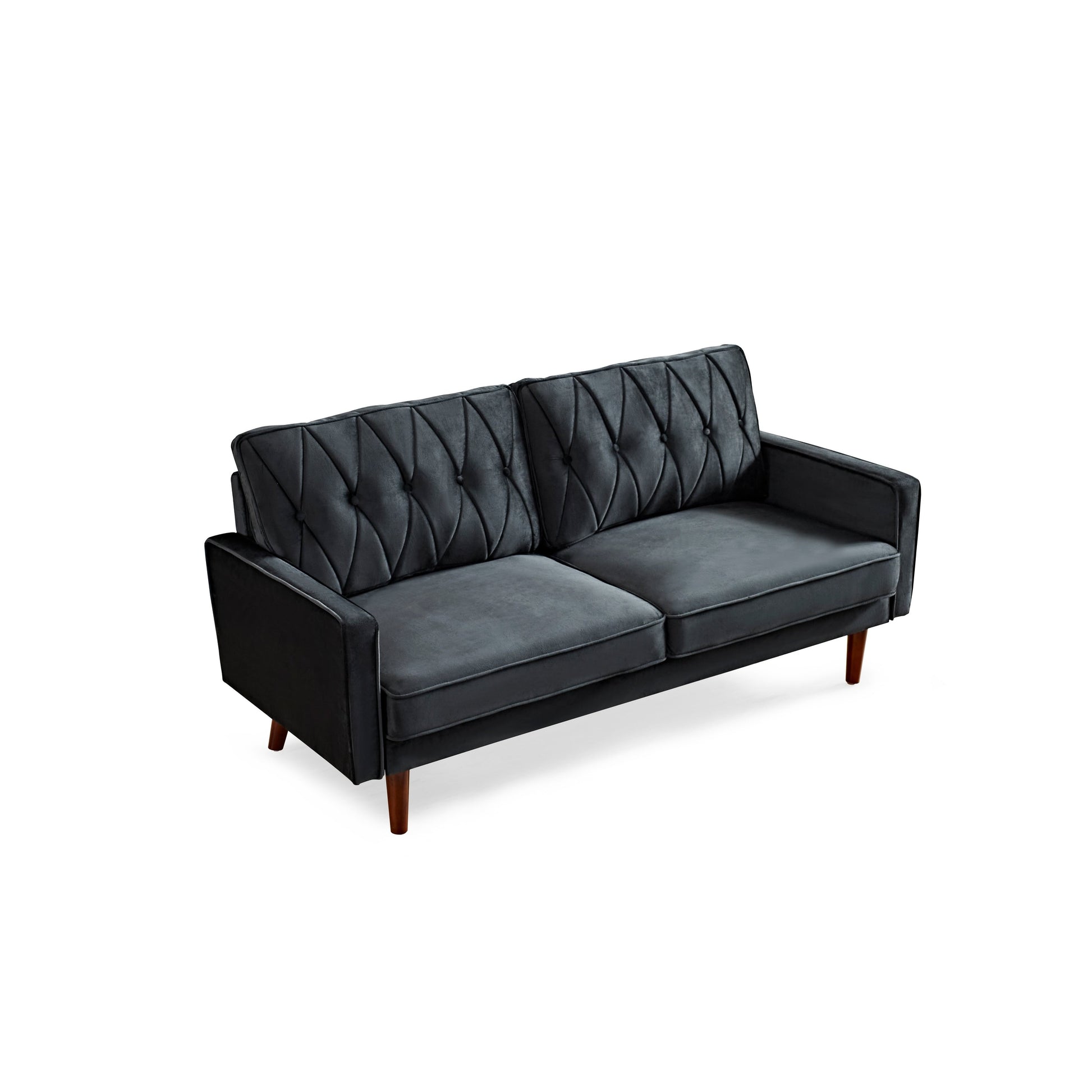 Get ready for ultimate comfort and style with the Feemster velvet tufted cushion back sofa. Perfect for a family movie night or just relaxing on your own, this mid-century modern style sofa is made of high-quality velvet fabric and features a streamlined silhouette with corded edges and button tufting. The solid and manufactured wood frame supports web suspension, a single firm foam-filled seat cushion, and a pair of velvet fabric bolster pillows. The round tapered legs in a pecon finish complete the look.