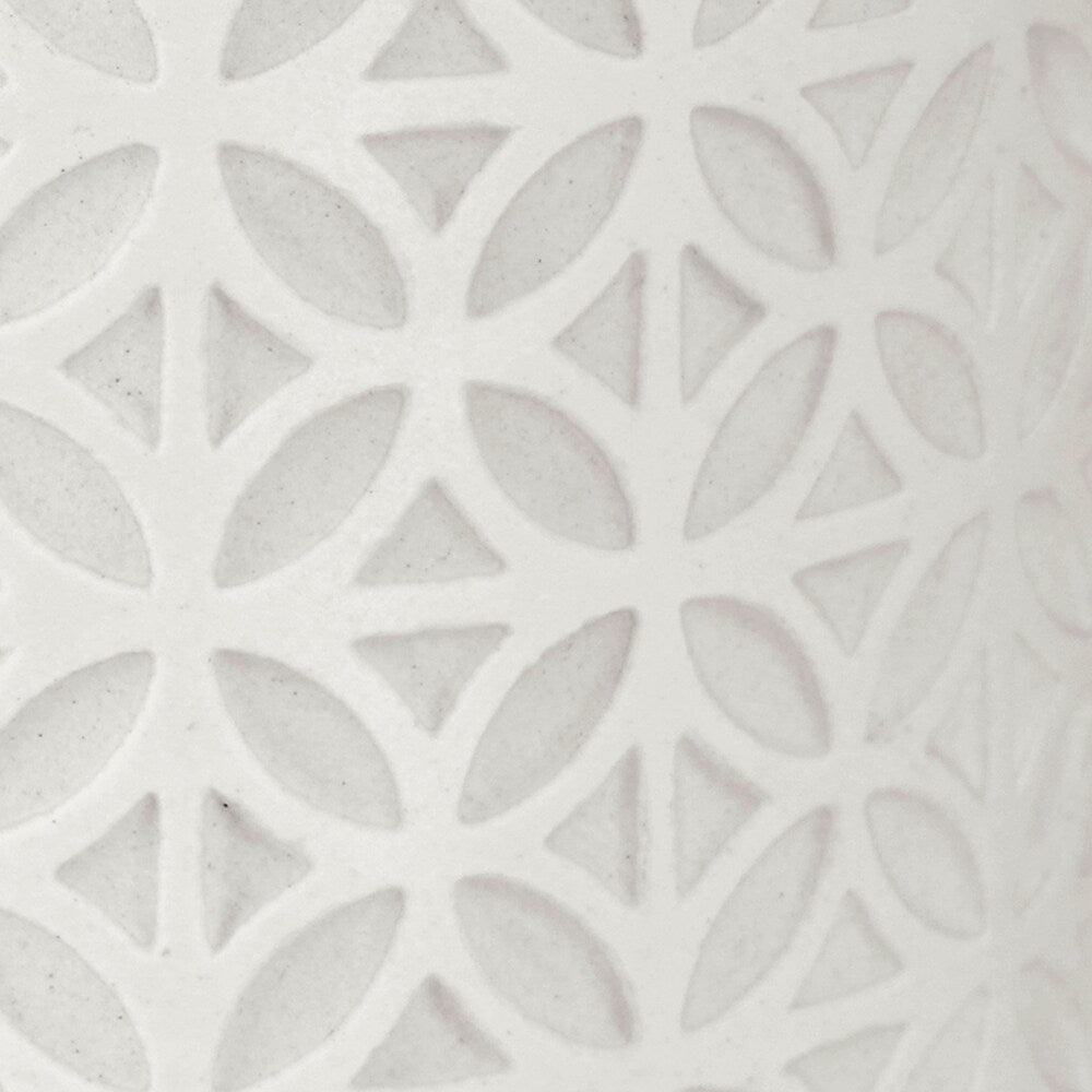 The intricate textural detailing and soft finish of the Felix Bath Accessories bring a serene and peaceful feeling to your spa-like bathroom. The Tumbler, Toothbrush Holder, Soap Dish and Lotion Pump are made of sandblasted ceramic for a distressed finish in a textural diamond motif. The complementary Wastebasket is made of embossed resin also in a textural diamond motif. Each piece is sold separately. Available in white, aqua blue and blush pink. Hand wash. Dtg