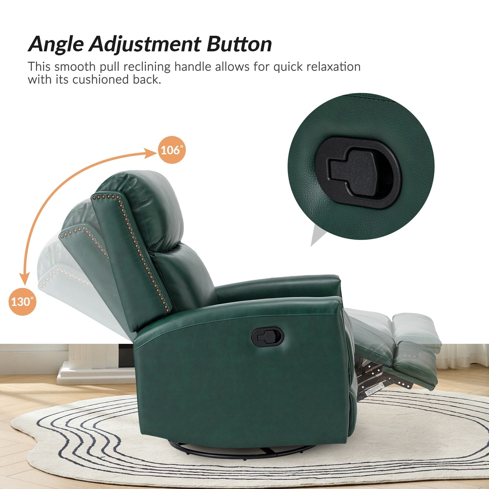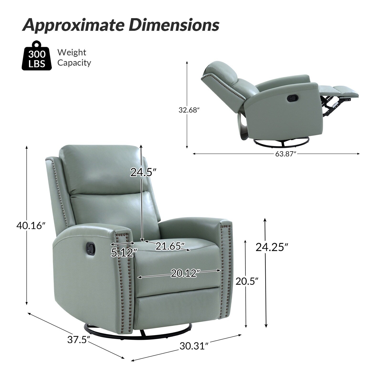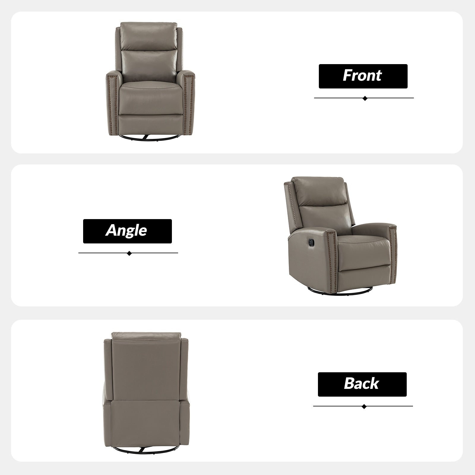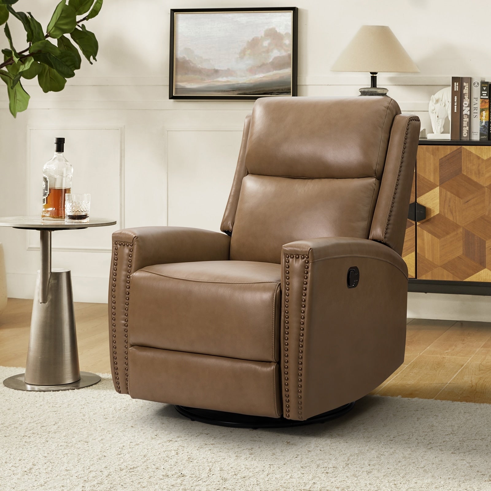 Fiacro 30.31Wide Modern Genuine Leather Wingback Swivel Rocker Recliner with Nailhead Trims