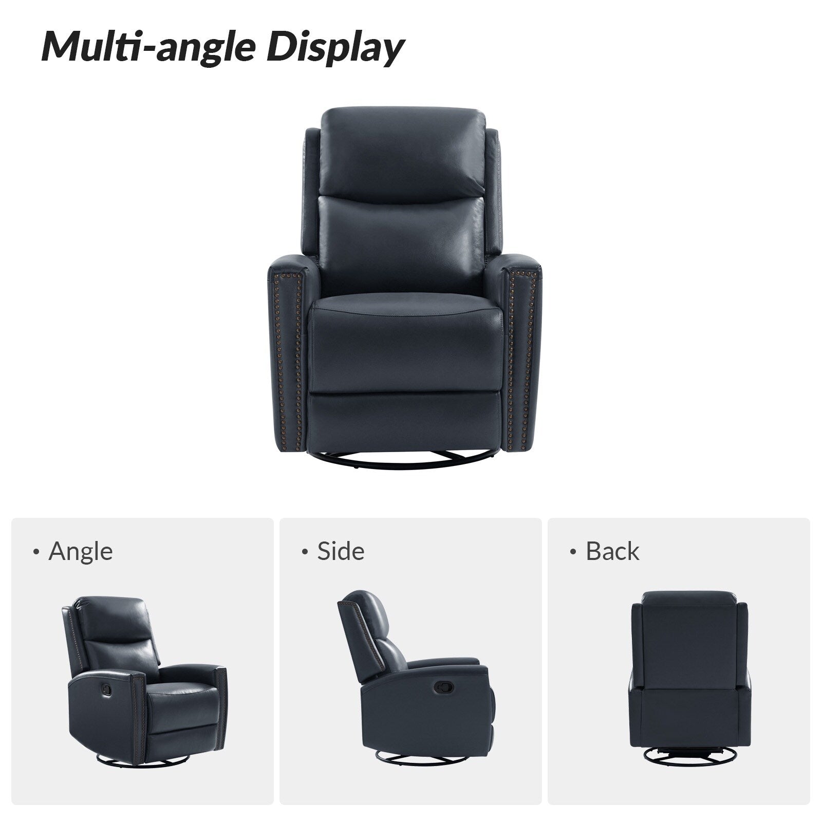 This genuine leather recliner lets you sit back and relax with ease during movie night in your living room or den. This recliner offers three positions for you to relax in and reclines at the pull of a handle, and it exudes luxury and comfort when both upright and in the reclining position while the smooth genuine leather adds sophistication, giving you style with no cost to relaxation potential. This recliner is crafted from manufactured wood with a mid-century modern appearance for simple yet fashionable charm in any living room. Glam nailhead trim outlines the shape of the arms, lending a rich and whimsical accent to your space. Plus, this is the perfect chair for grabbing some freshly buttered popcorn, kicking back, and watching a movie with the whole family on a Friday night.