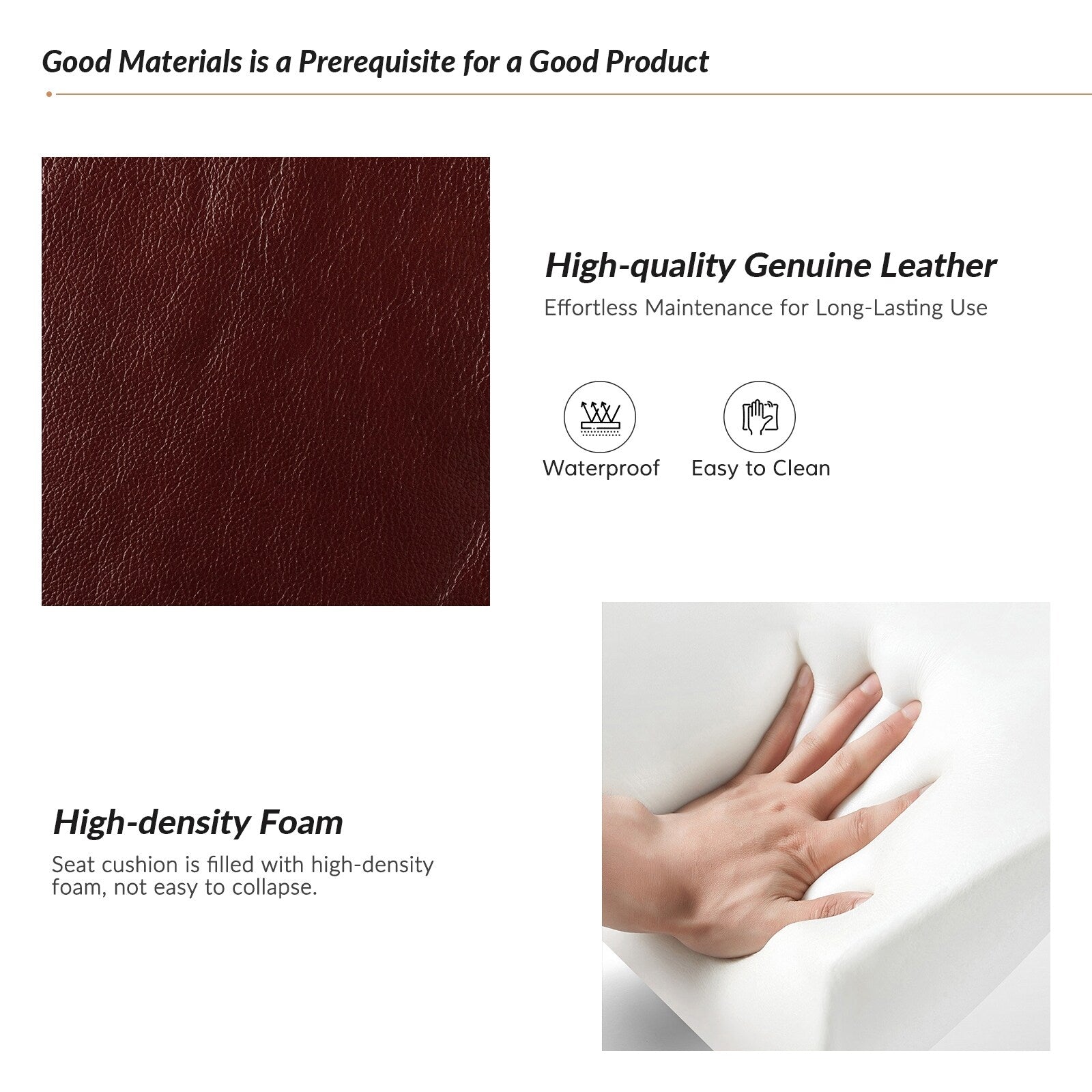 Contemporary Classic Style: Upholstered in comfortable filling and genuine leather, the nailhead trim for an inviting feel, is suitable for all kinds of living room decoration.