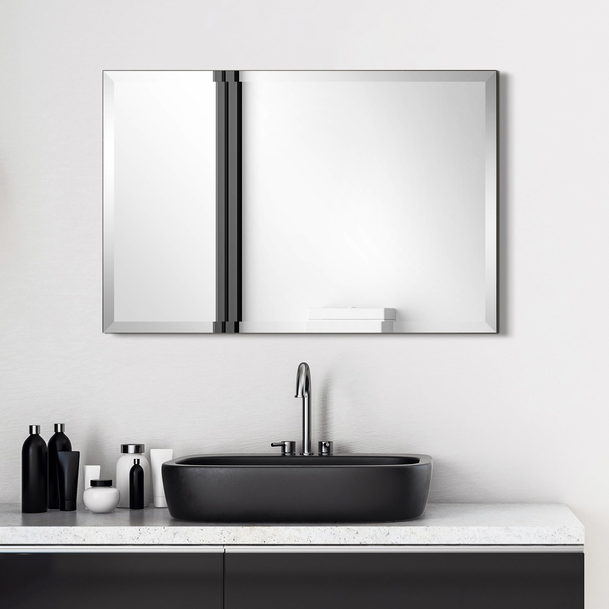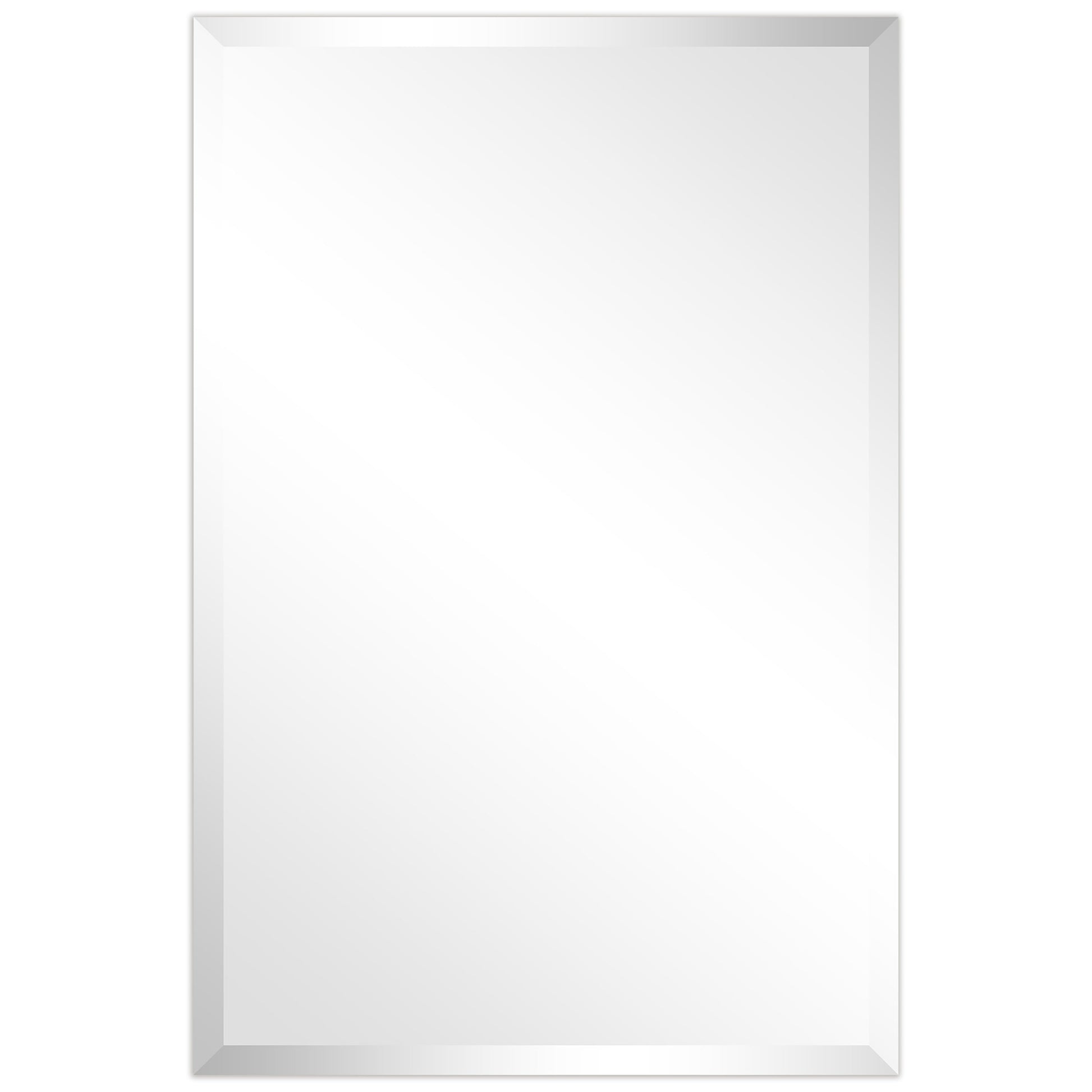 Add a touch of elegance to your home decor with this Frameless Beveled Prism Wall Mirror. Featuring a simple yet beautiful design, this clear mirror has a rectangular shape with a sleek beveled edge. Perfect for any room in your home, this mirror adds depth and style to your space. It comes with hangers attached to the back, allowing you to hang it horizontally or vertically with ease.