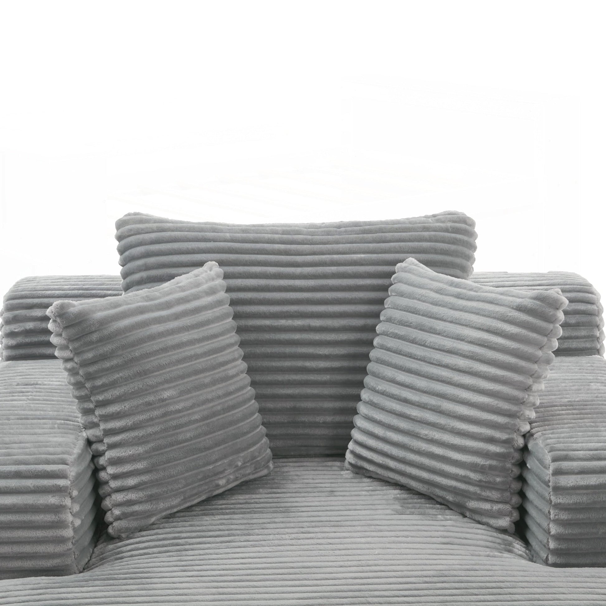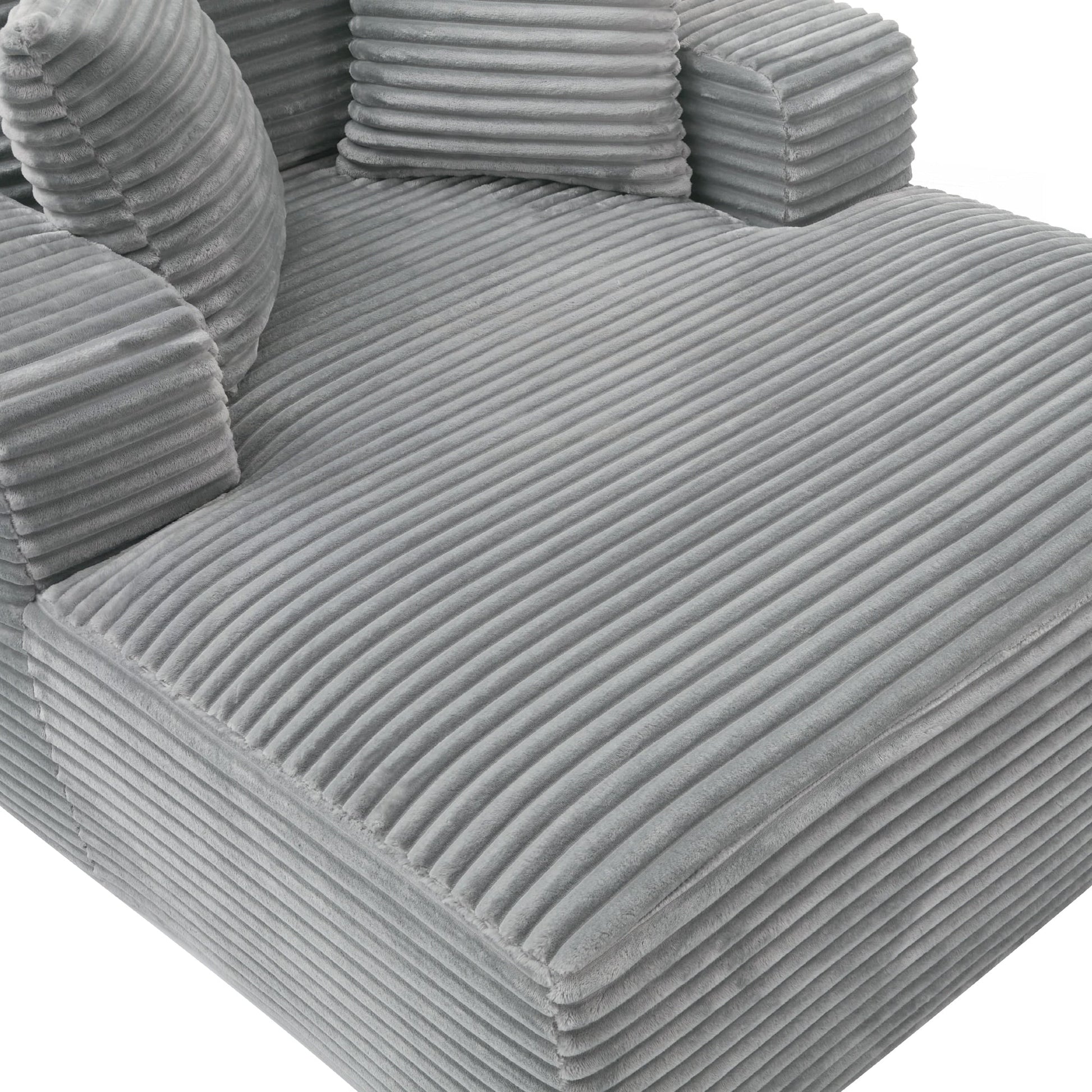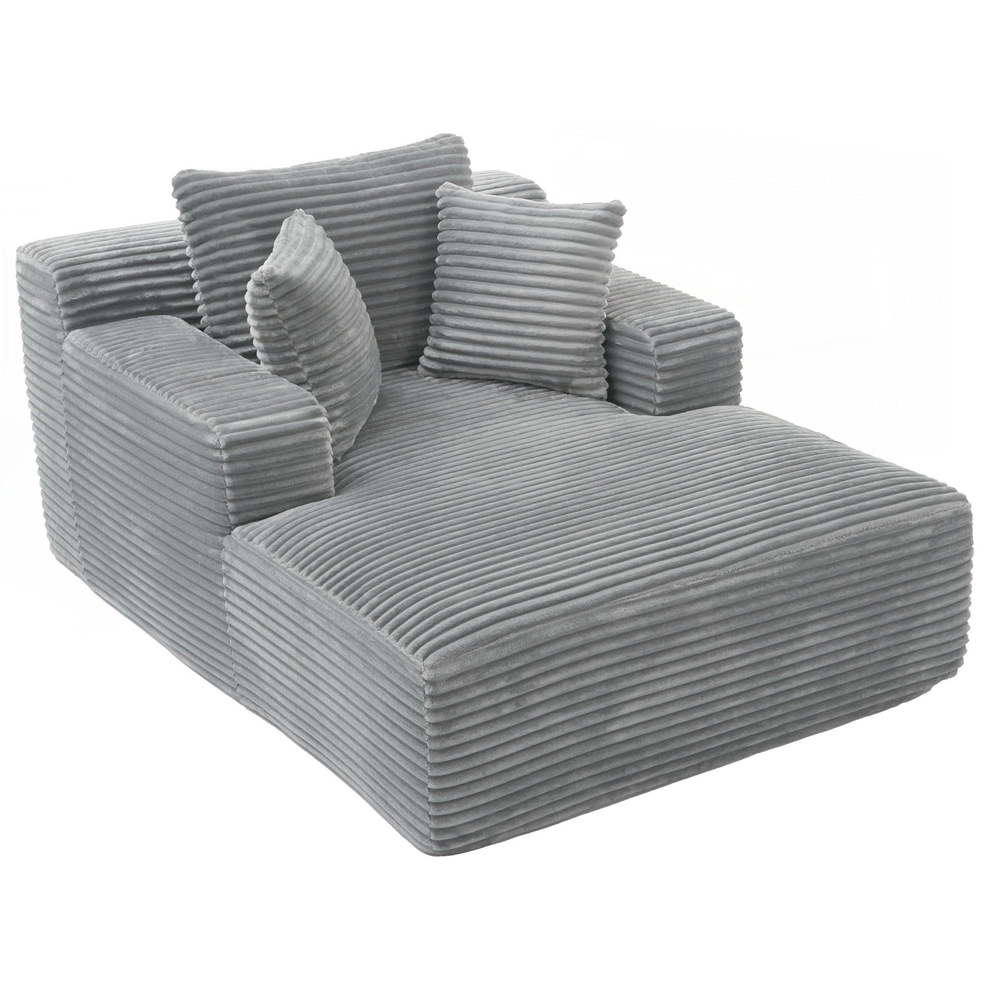 This chaise lounge offers a spacious and comfortable seating experience with its wide design (47.2 inches deep and 48.8 inches wide), perfect for lounging, reading, or napping. Upholstered in luxurious corduroy fabric, it features a soft, plush texture with a timeless, vertical ribbed pattern.