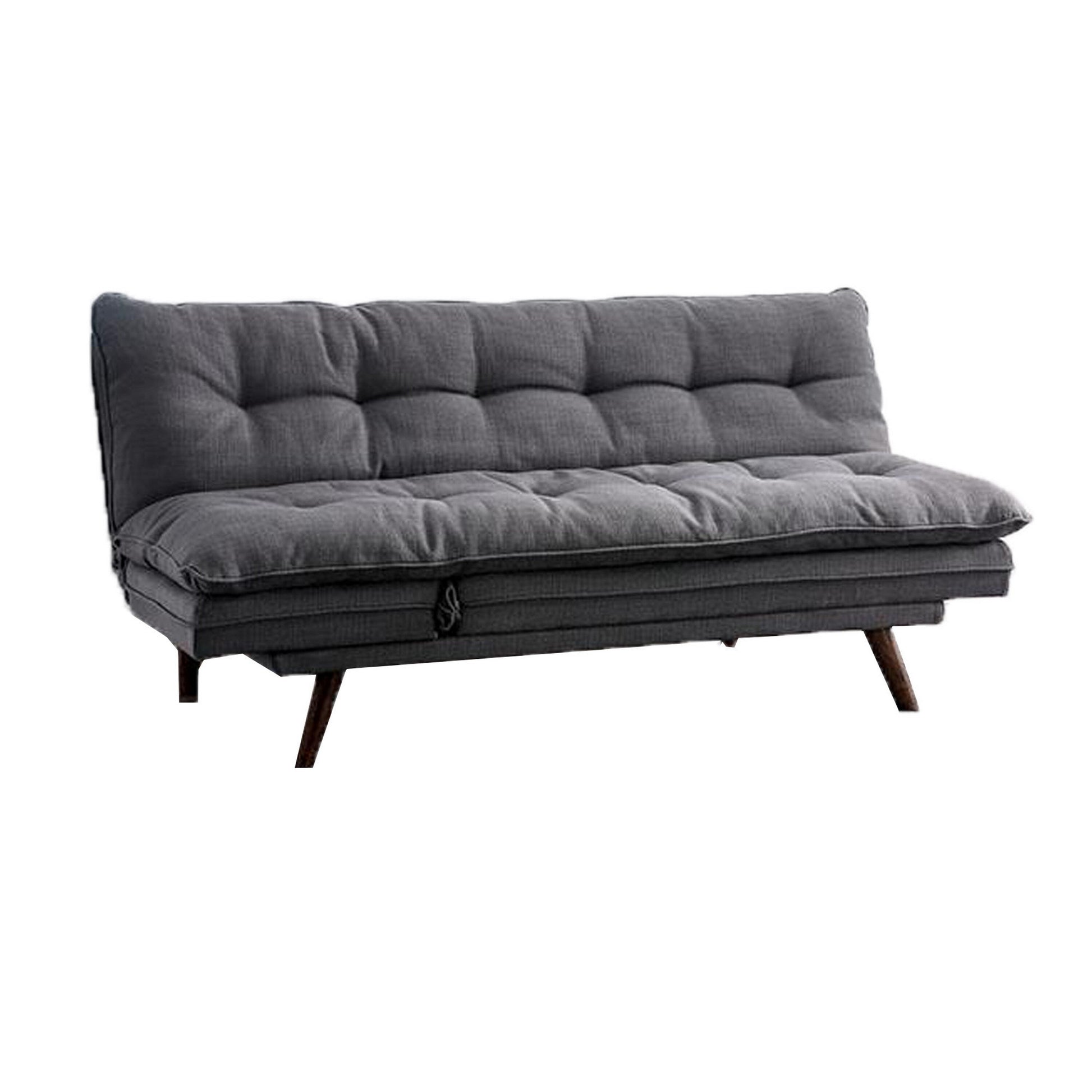 Experience versatile comfort with this mid-century modern futon sofa that easily converts into a bed. Upholstered in linen-like fabric and built with solid wood construction, it offers both style and support. The button tufting and extra support legs provide durability and comfort, while the adjustable backrest ensures the perfect angle for lounging or sleeping.