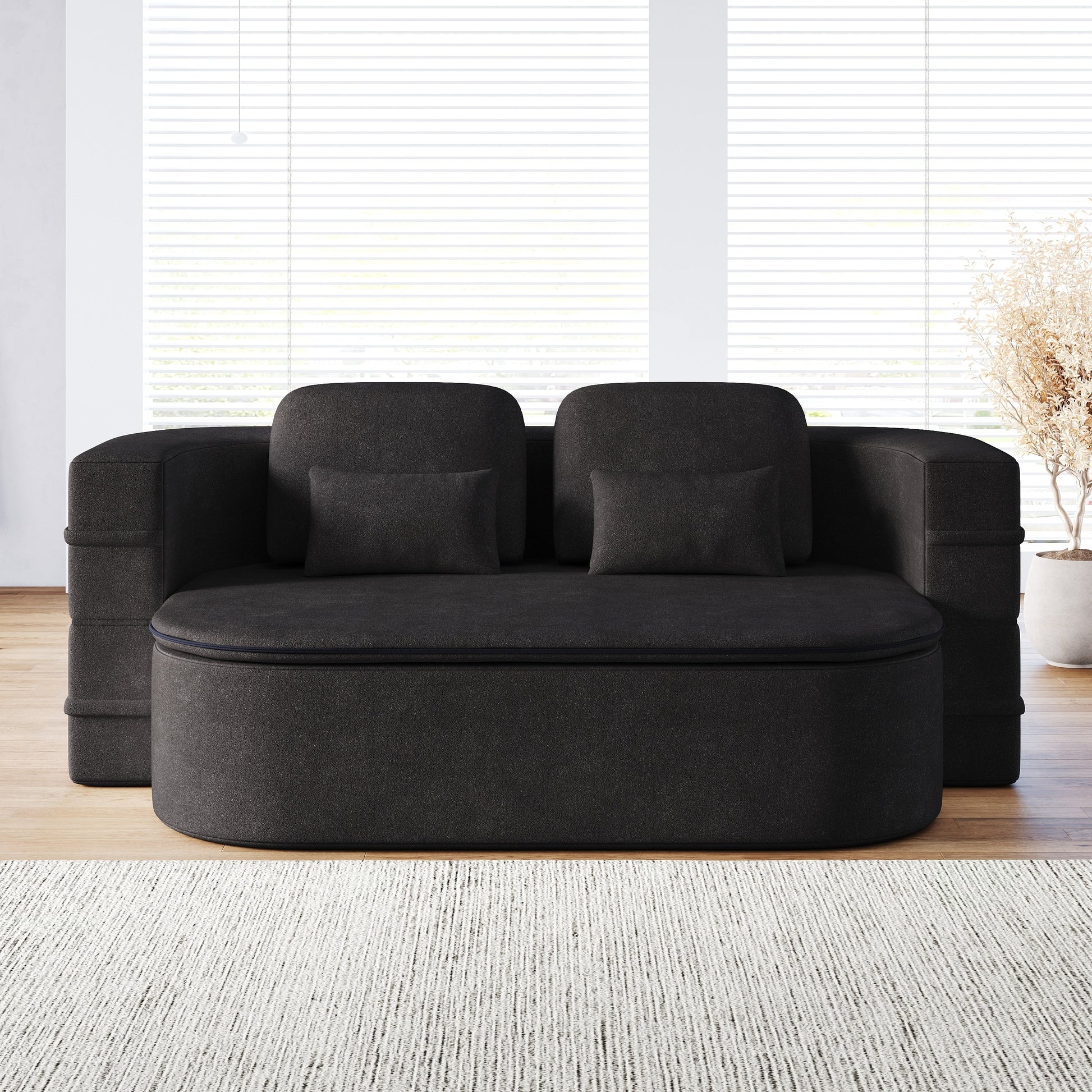 HighâDensity Foam and SilkâWool Blanket Integration: At the heart of the design lies a multiâlayered seat structure featuring highâdensity foam and spring packs for robust support. The included silk woolâfilled blanket folds inward to enhance seating comfort and unfolds as a cloudâlike comforter when used as a bed.