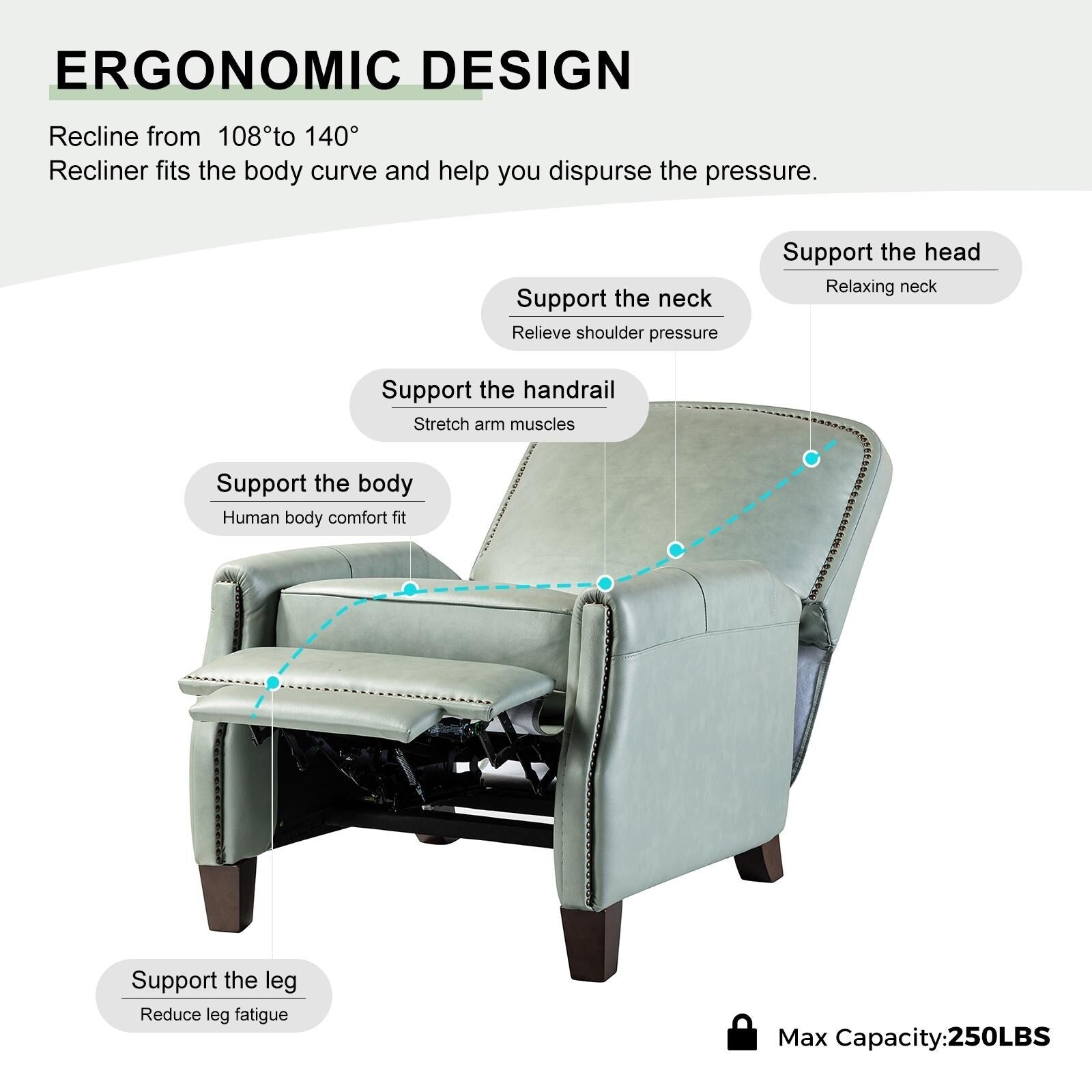 Nailhead Trim: Beautifully crafted nailhead trim adds an elegant and stylish touch to the recliner's design.