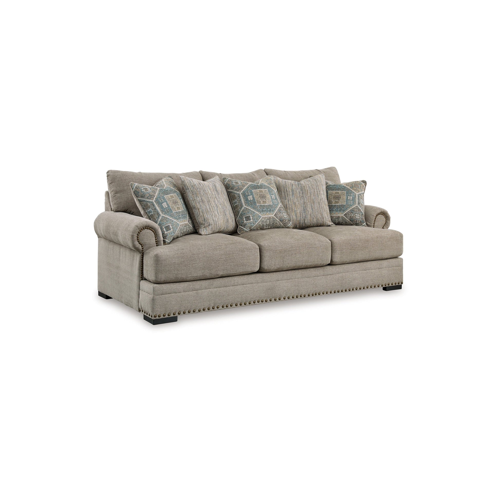 Bring a touch of elegance to your space with this stylish armchair. Built with a corner-blocked frame, it features soft polyester upholstery in a taupe gray finish for a refined look. Reversible seat and back cushions, wrapped in a feather-fiber blend, provide plush relaxation, while rolled arms and nailhead accents add classic charm. Explore our Golo collection for more options.