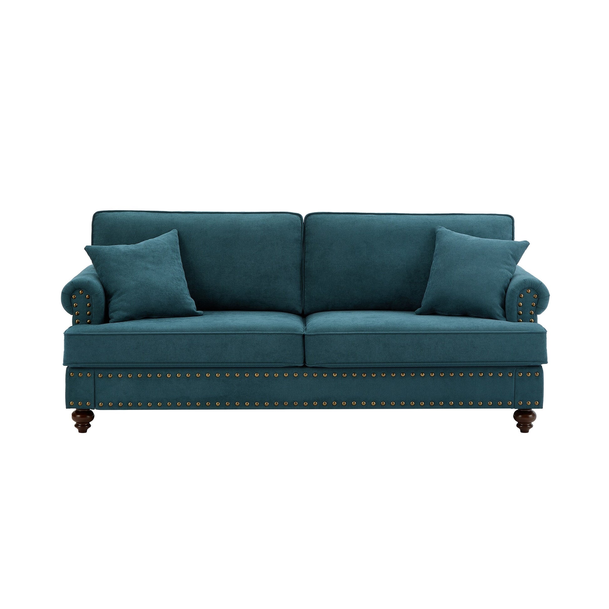 Green 82Modern Chenille 3 Seater Sofa Couch, with Brown Legs, 2 Pillow and Removable Cushions, Back