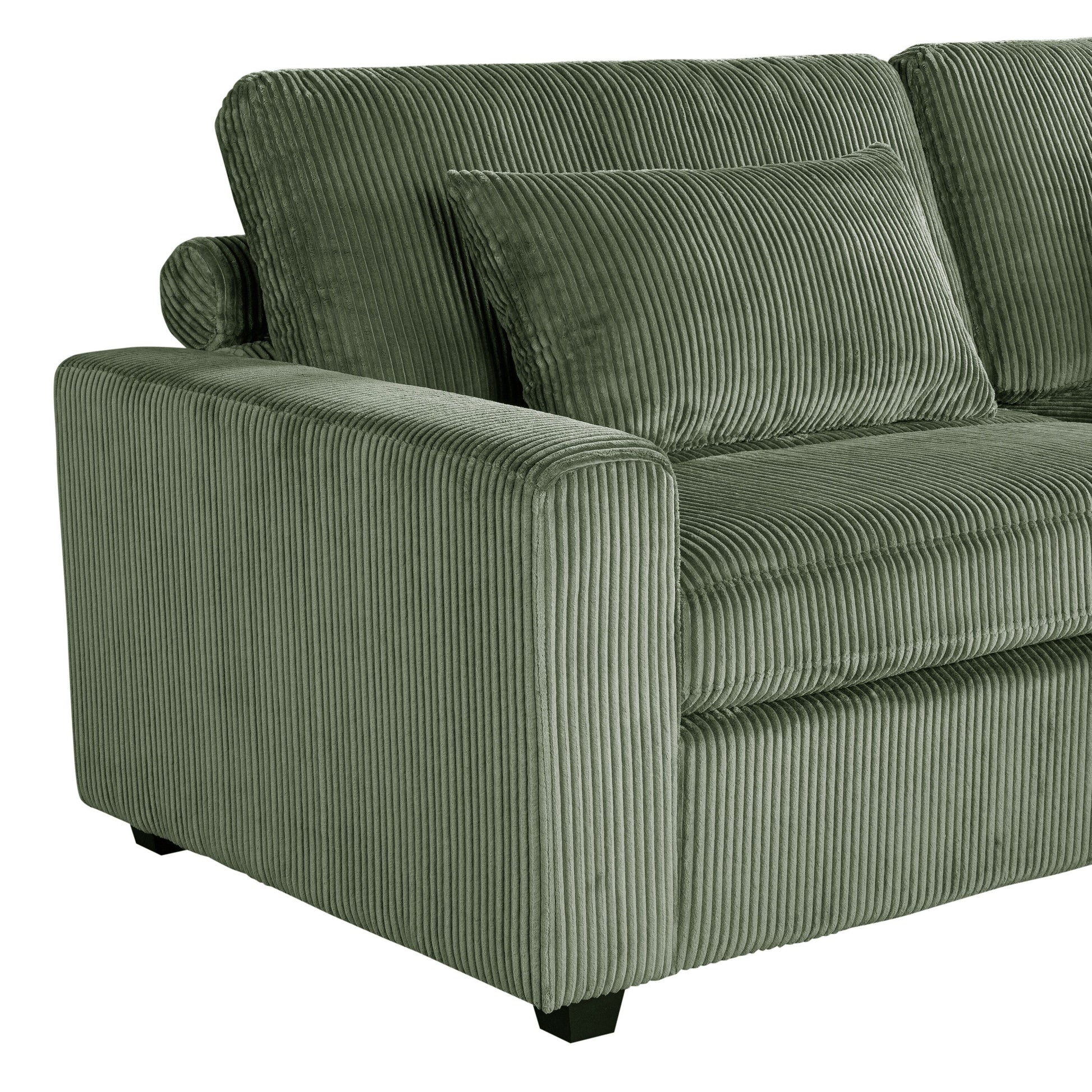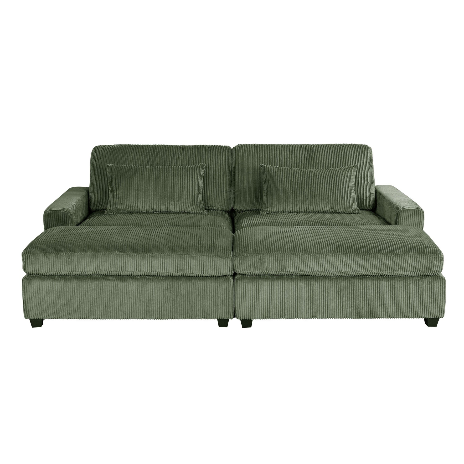 Green 90'' Polyester 2 Seater Sofa Couch with Removable Back Cushions, 2 Pillows and Detachable Ottomans for Living Room