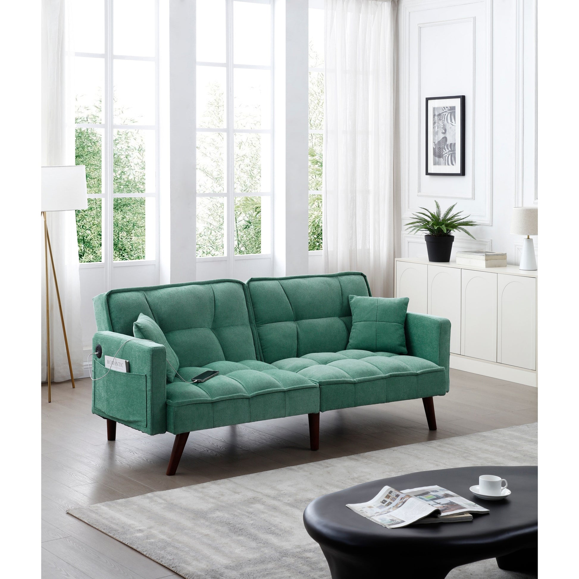 Green Chenille Loveseat Sofa Bed with USB Charging Port
