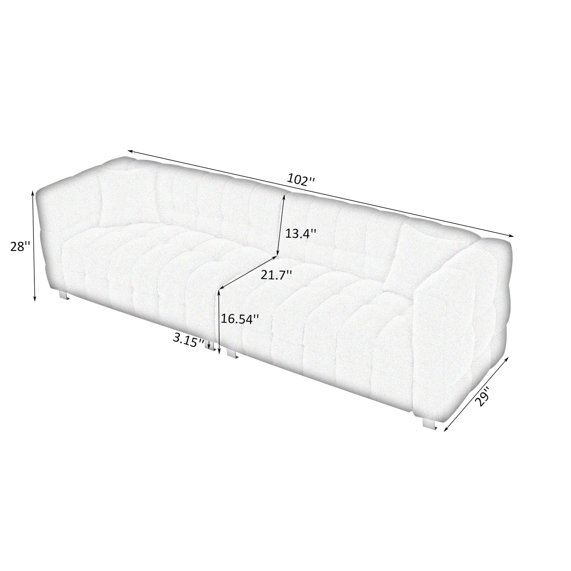 Grey 102'' Teddy Velvet 4-Seater Sofa with Metal Legs and Throw Pillows, Modern Multi-Directional Design for Living Room