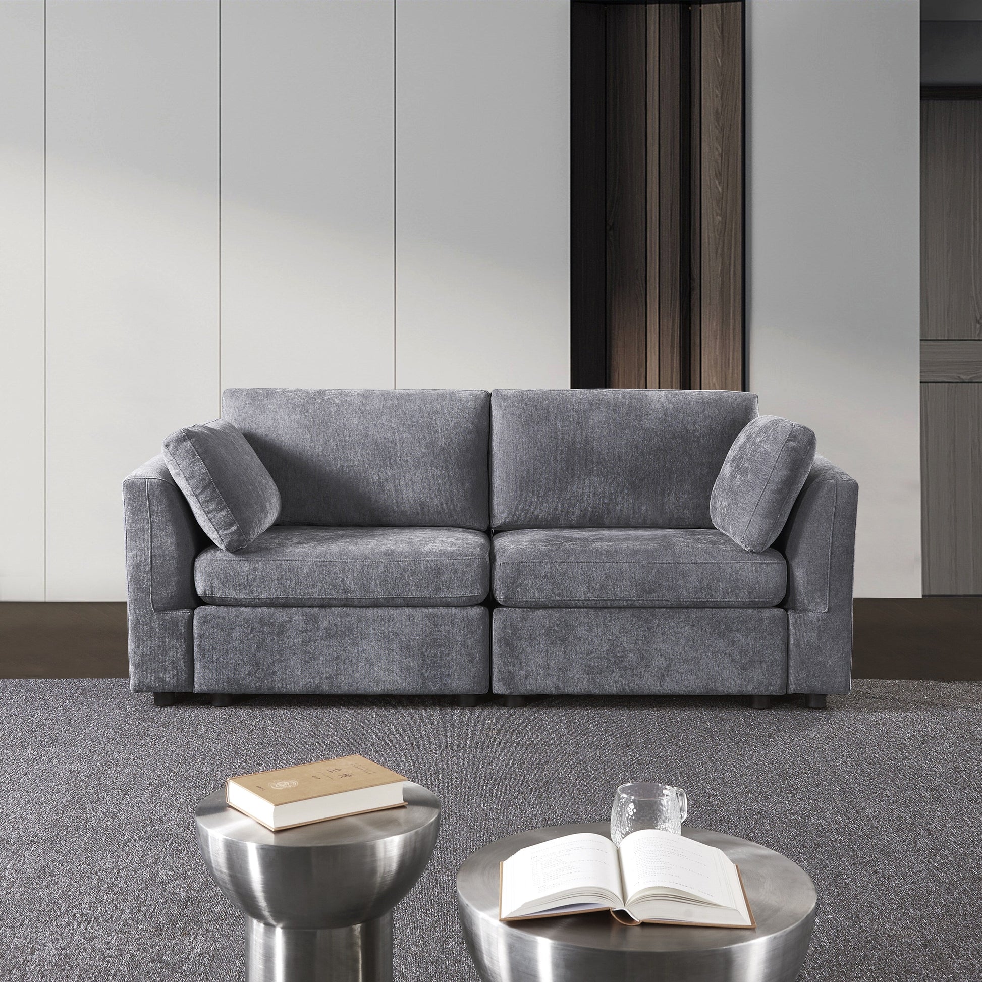 Grey 80.31 Chenille Loveseat Modular Sofa...