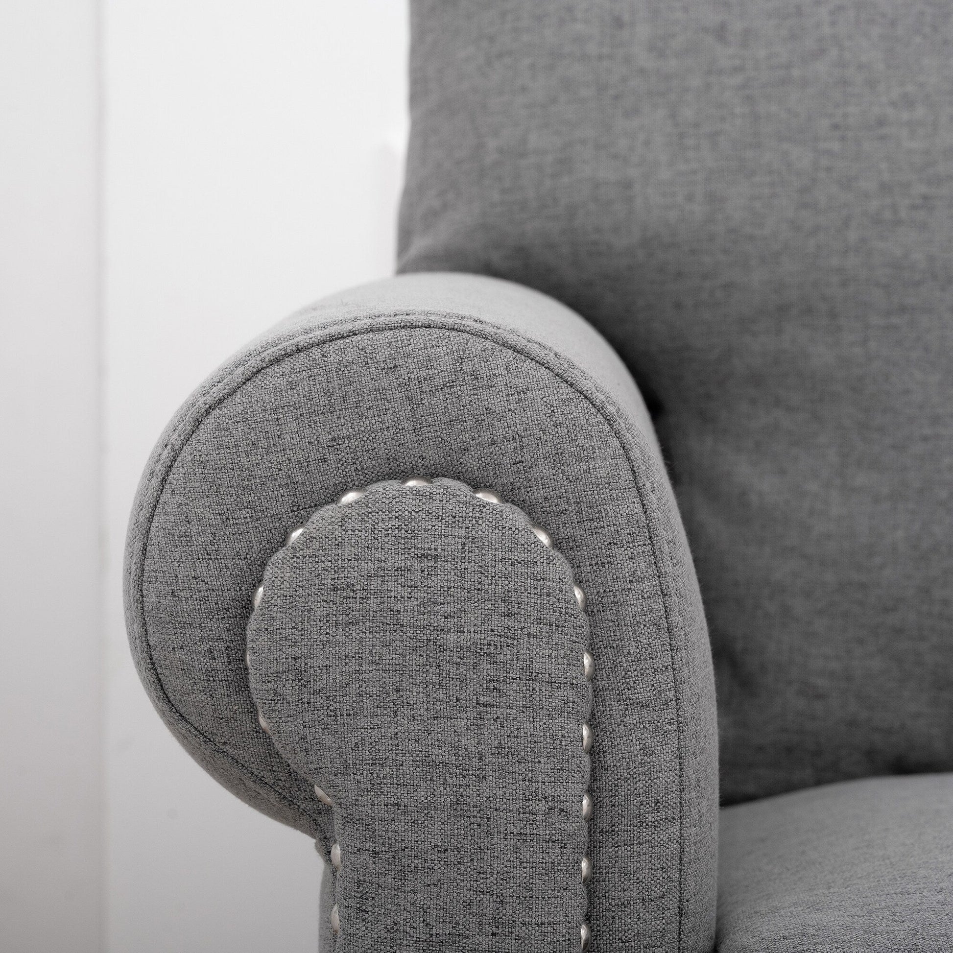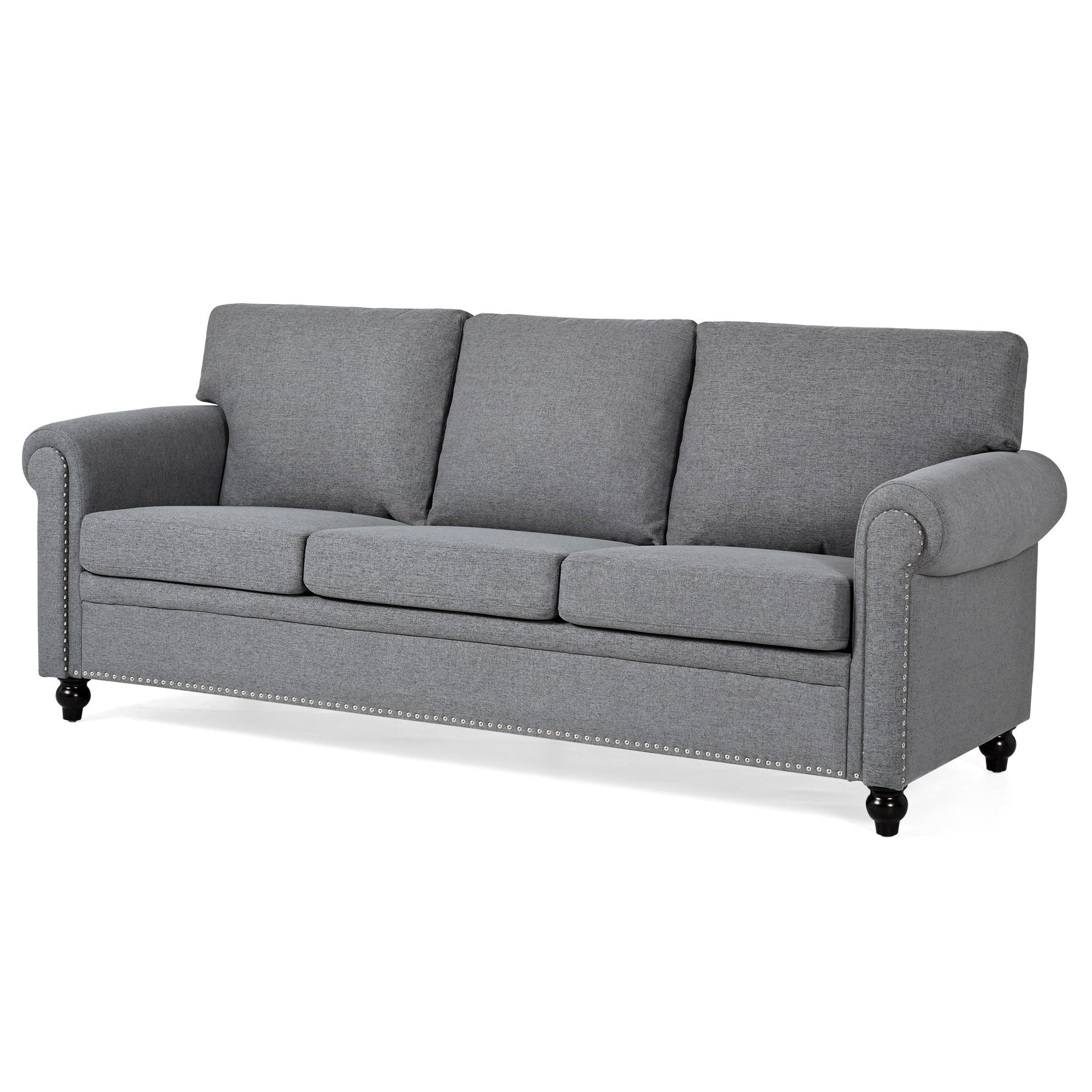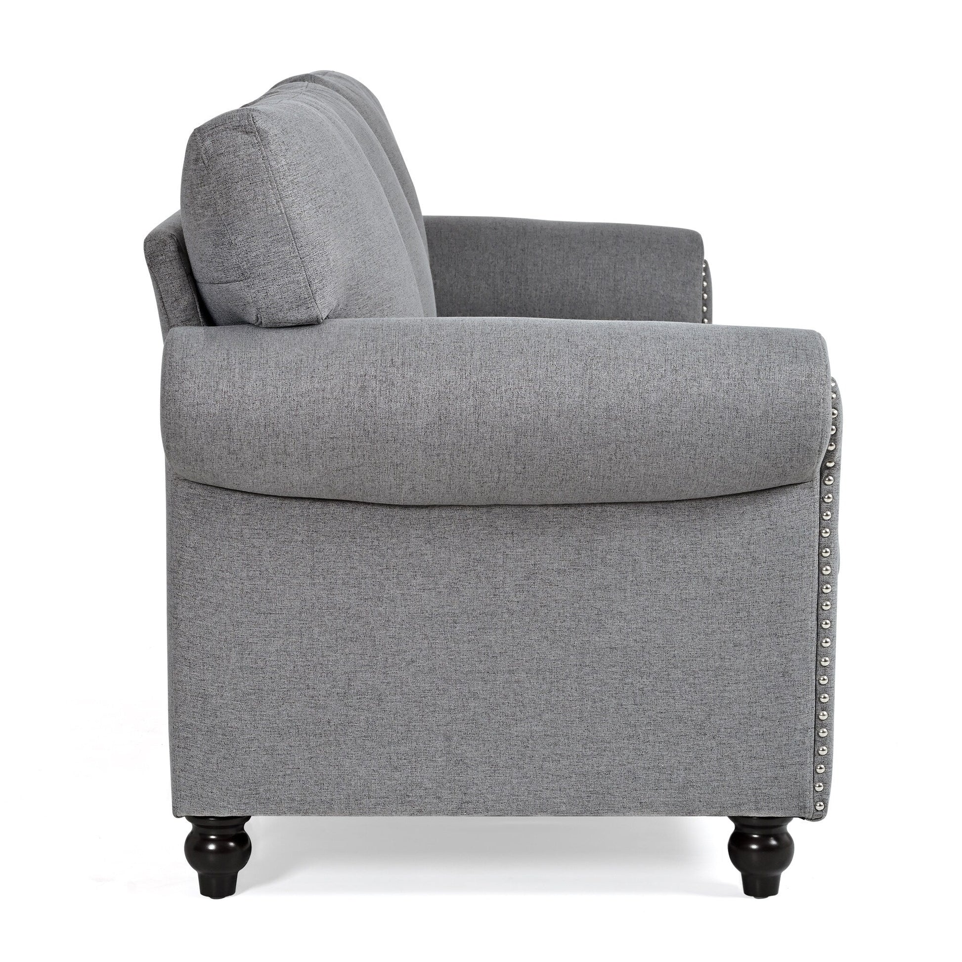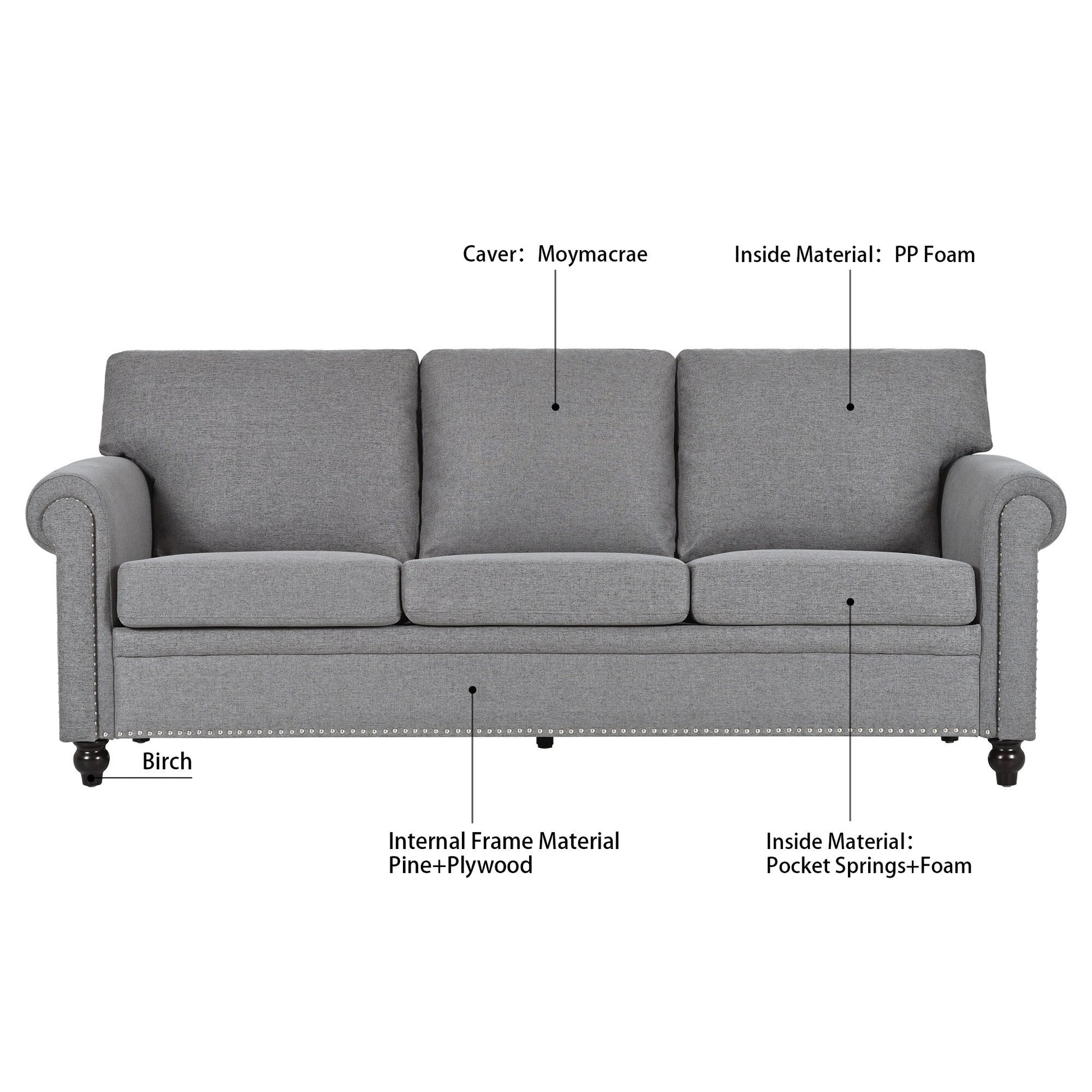 Grey 83.86 Upholstered 3-seater Sofa with Nailheads and Birch Feet for Living Room