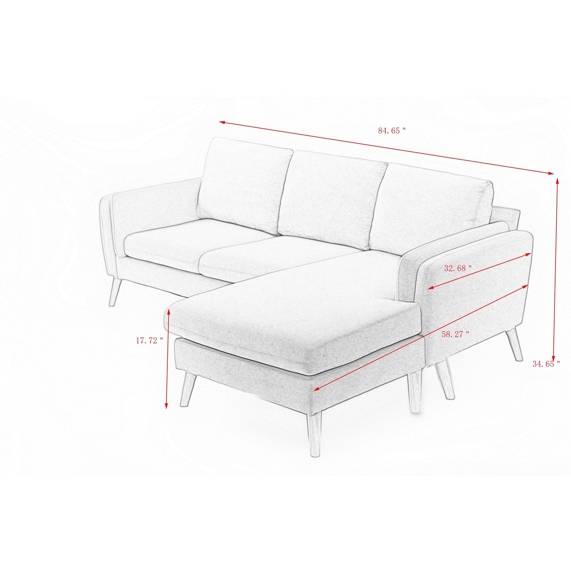 Grey 84.6 Linen L-Shaped Sofa with Reversible Chaise, Independent Spring Cushions, and Solid Wood Frame