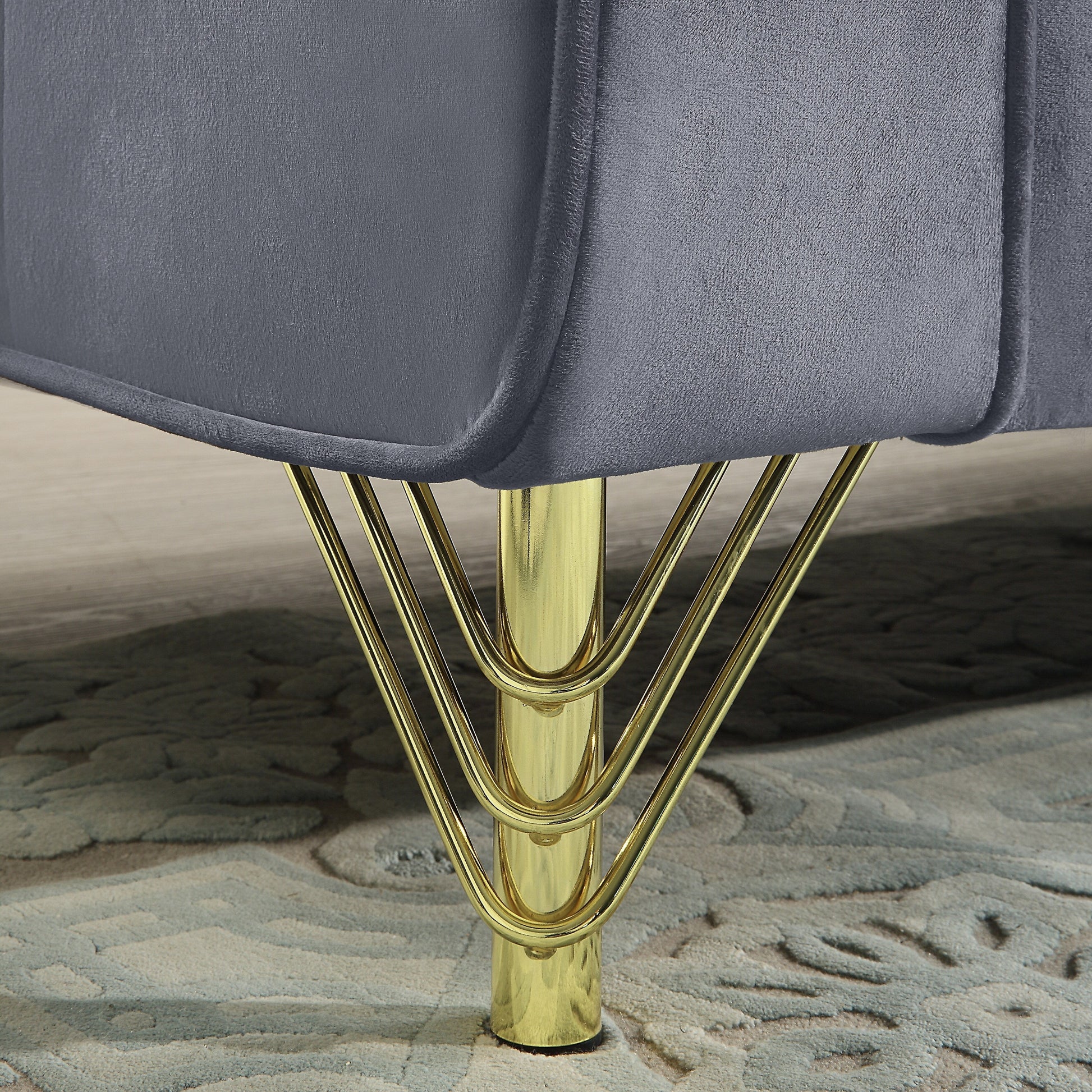 Grey 86.61 Velvet 3-seater Sofa with Pillows and Gold Finish Metal Leg for Living Room