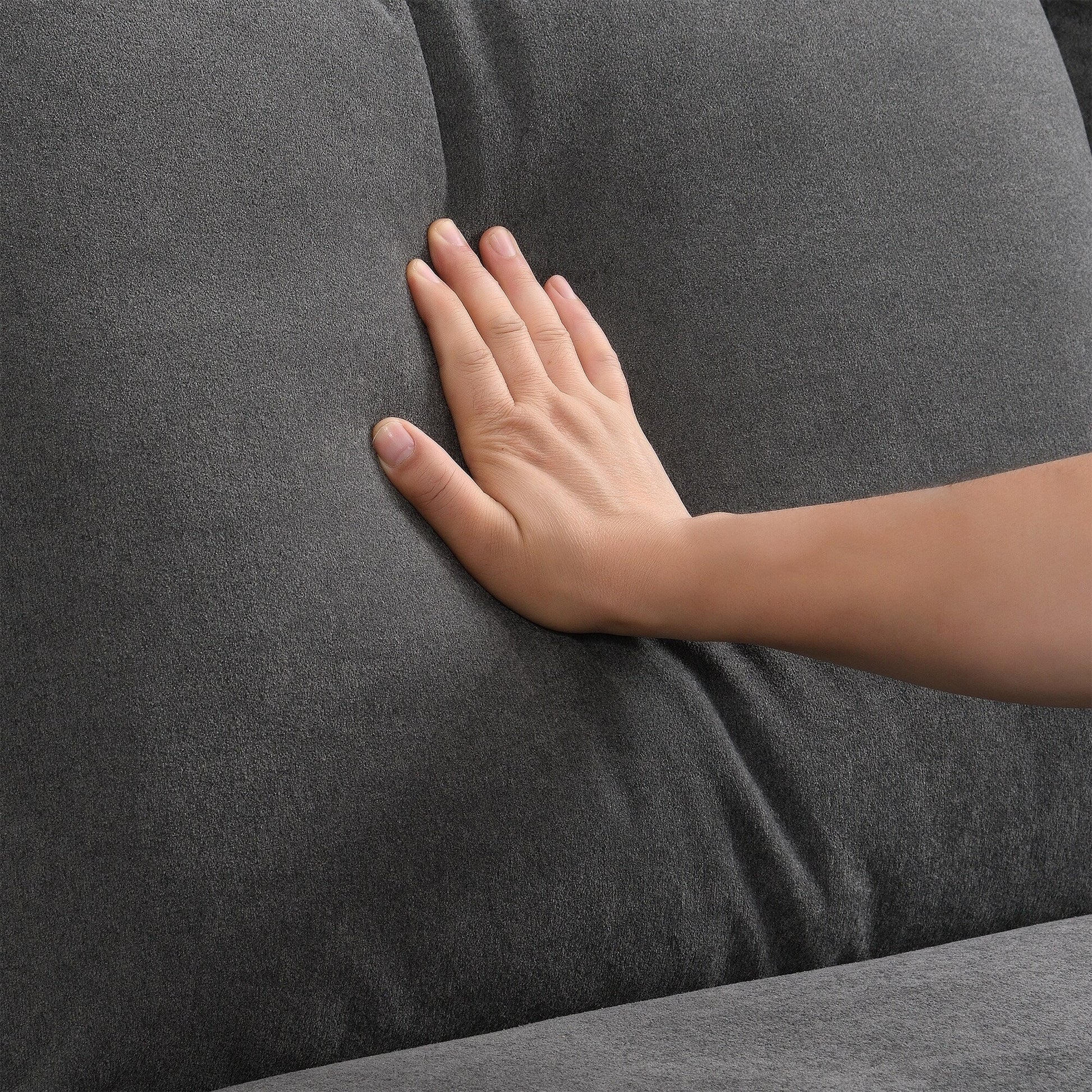 Product Description: The double cushion L-shaped sofa offers space optimization, enhanced comfort, versatility, aesthetics, customization options, and promotes social interaction. It is a practical and stylish choice for those looking to maximize their living space while enjoying a comfortable and inviting seating arrangement.