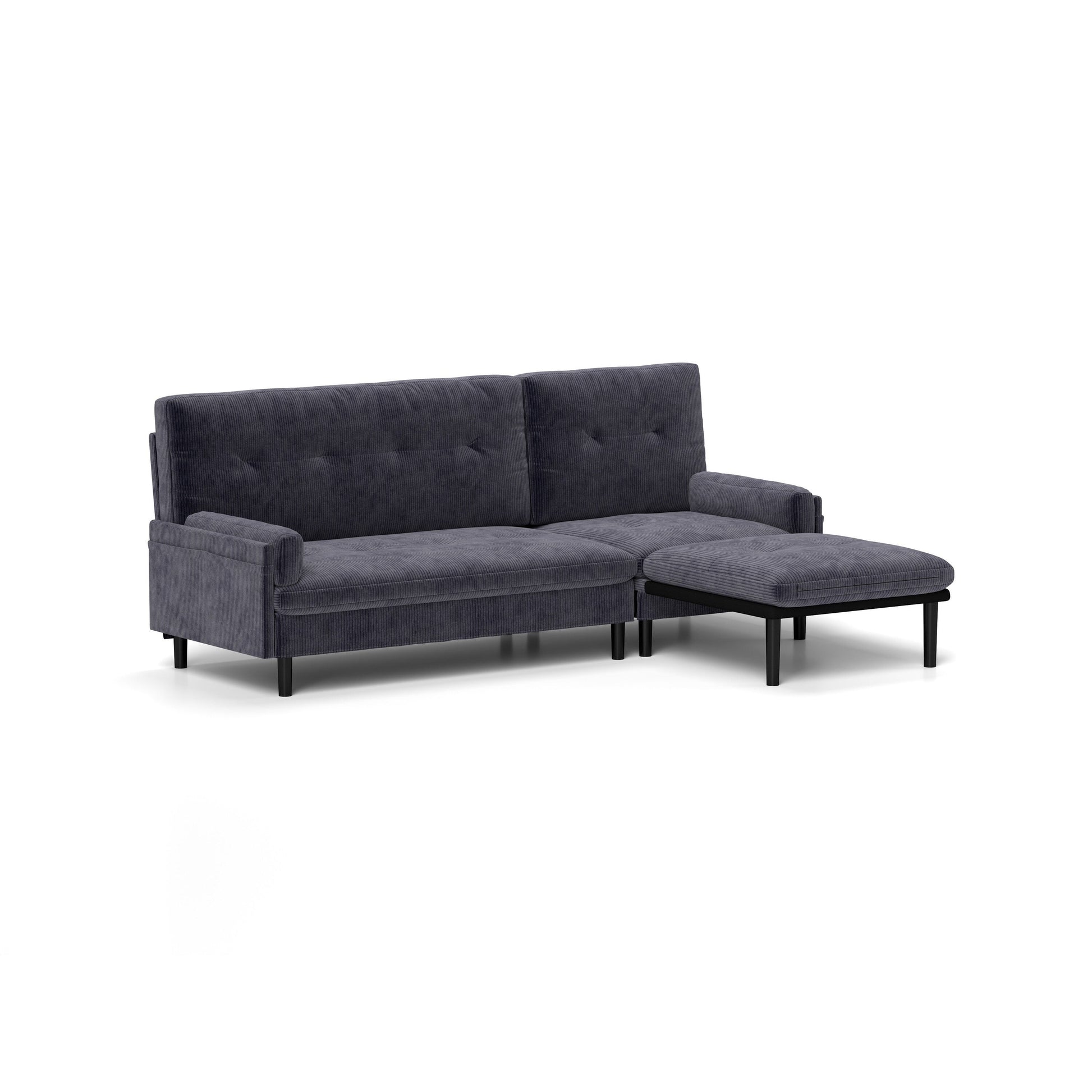 Grey Corduroy Adjustable 3-seater Sofa and Guest Bed