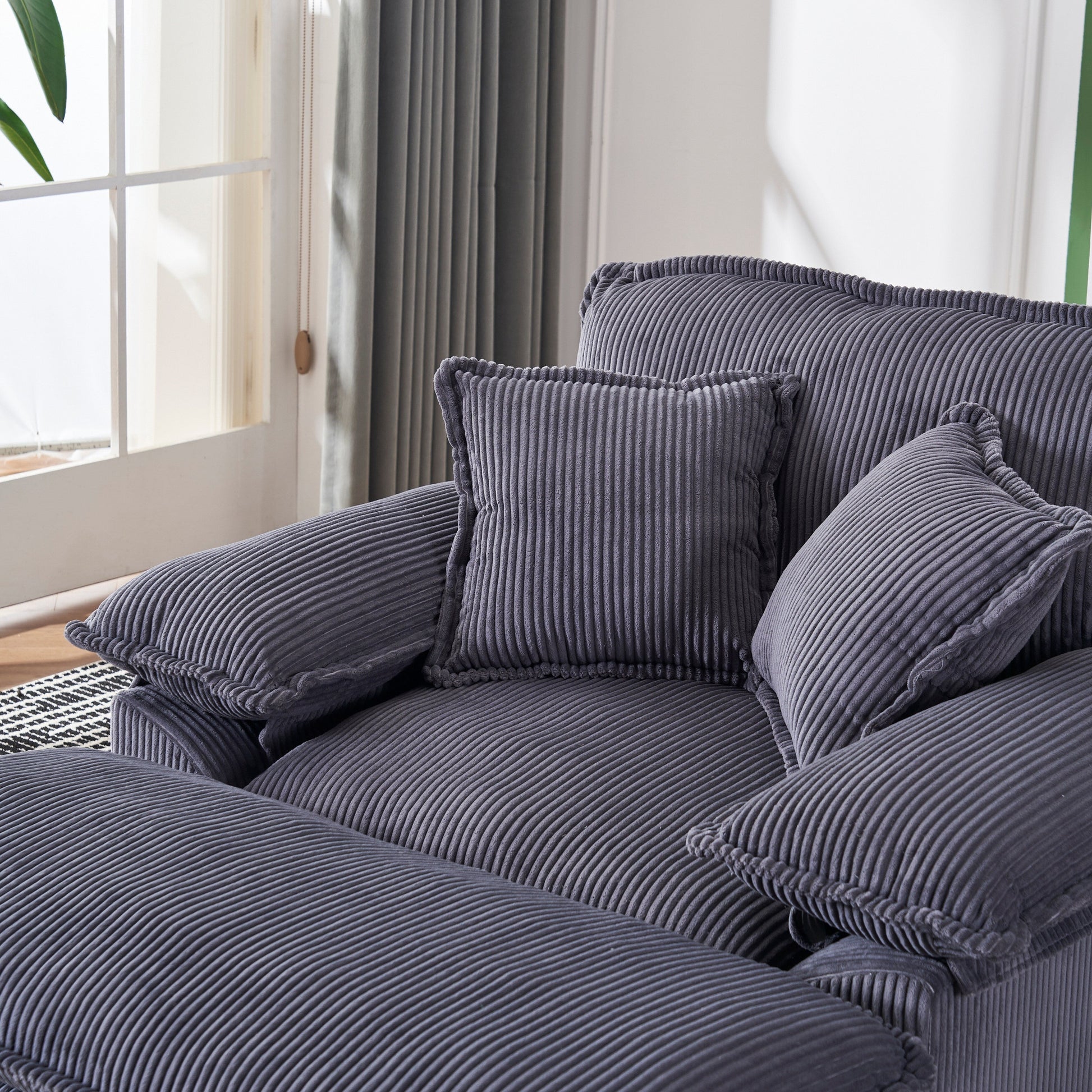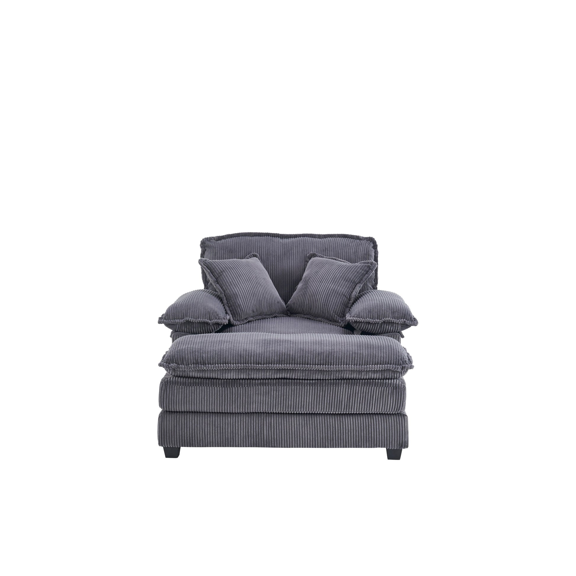 Grey Corduroy Single Deep Seat Sofa with Ottoman
