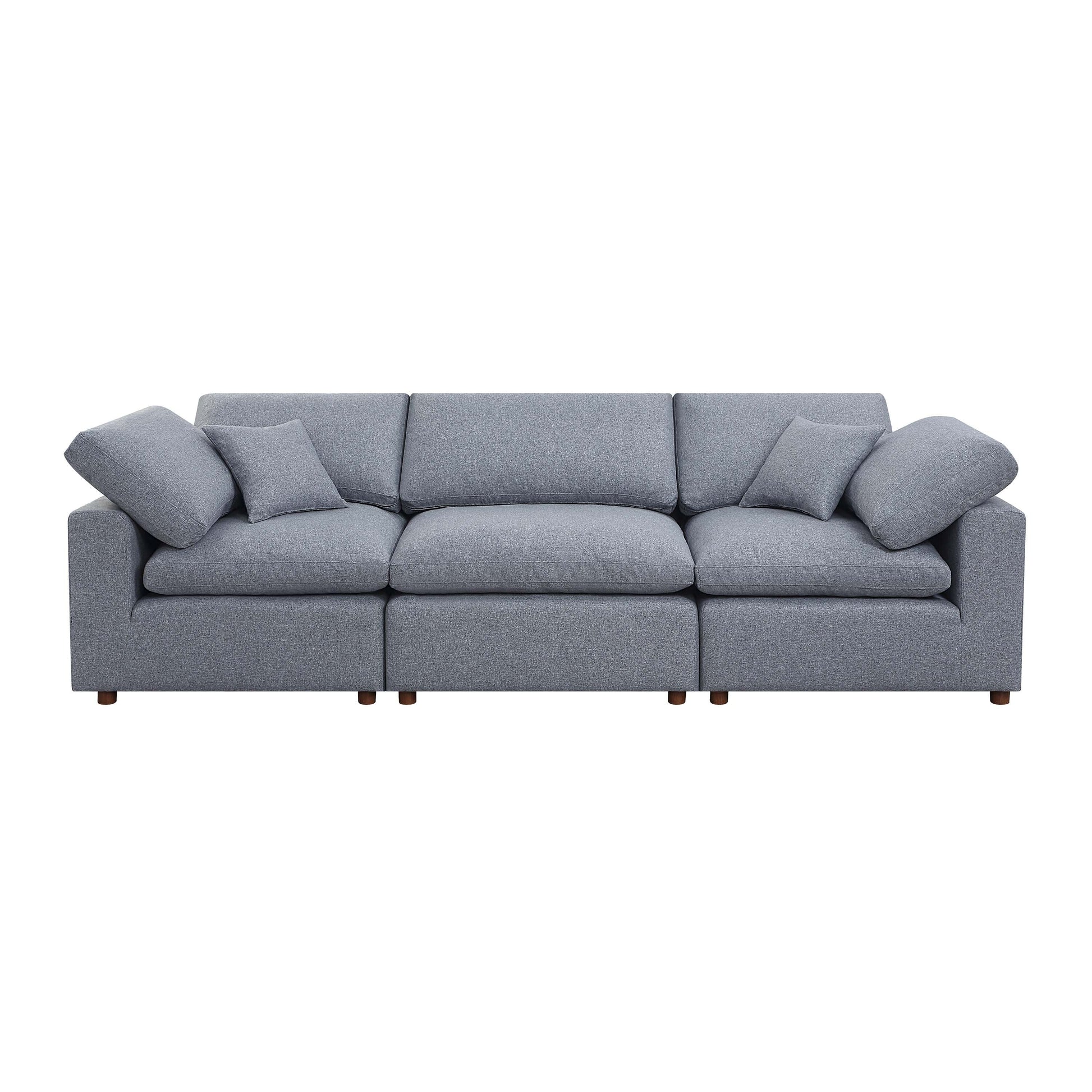 Grey Linen 3-seater Modular Sectional Sofa with Pillows