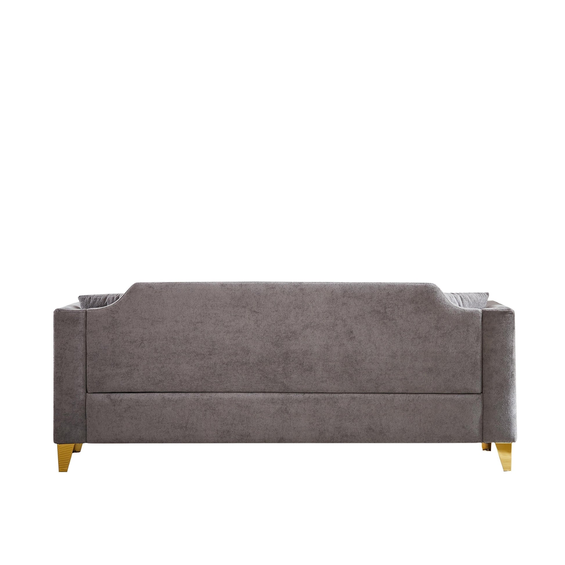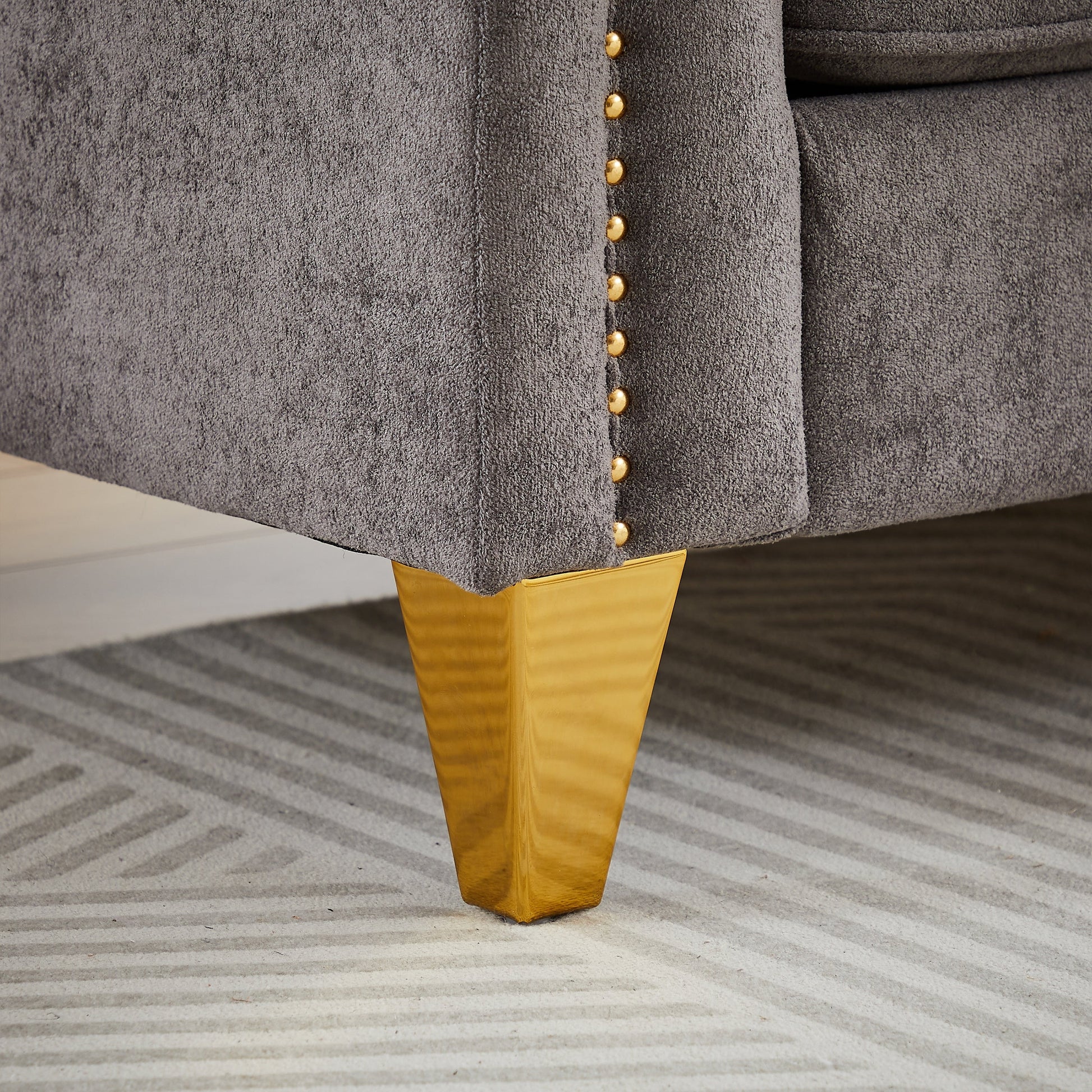 • The unique combination of gold-colored metal legs and brass nails on the armrests makes it look high-end. The inlaid button design also brings a few noble qualities to the sofa. This sofa will be a bright and complementary addition to your home or office.