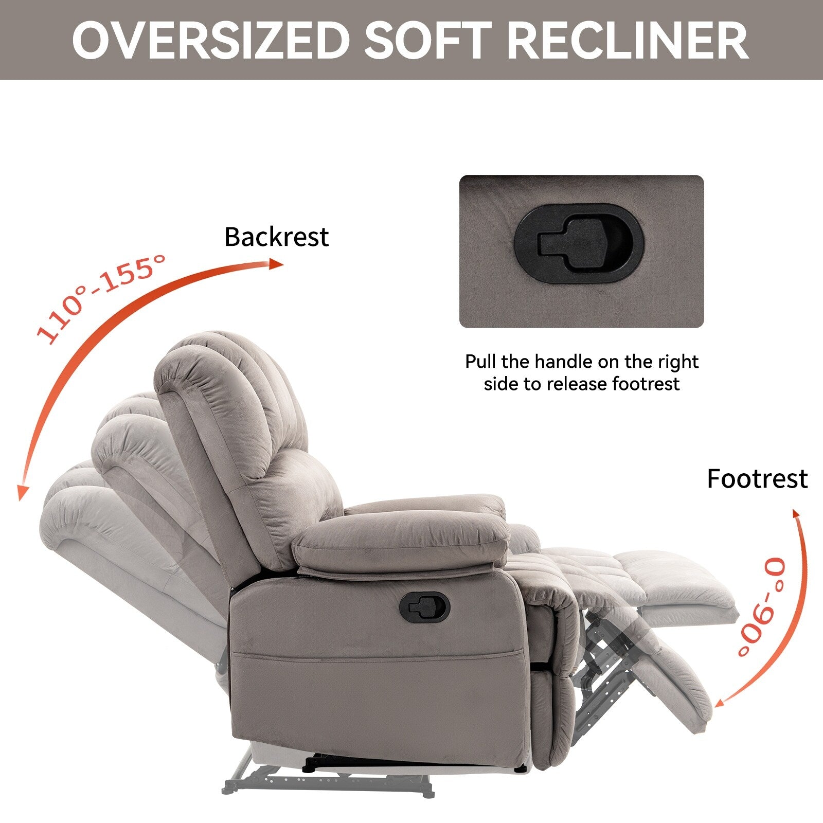 Oversized Recliner Chair: You can pull the side button to control the recline of the recliner chair, which allows you to get any position you want, up to a maximum recline of 155 degrees. This recliner chair's extra-large appearance makes it an ideal choice for people of larger size.
