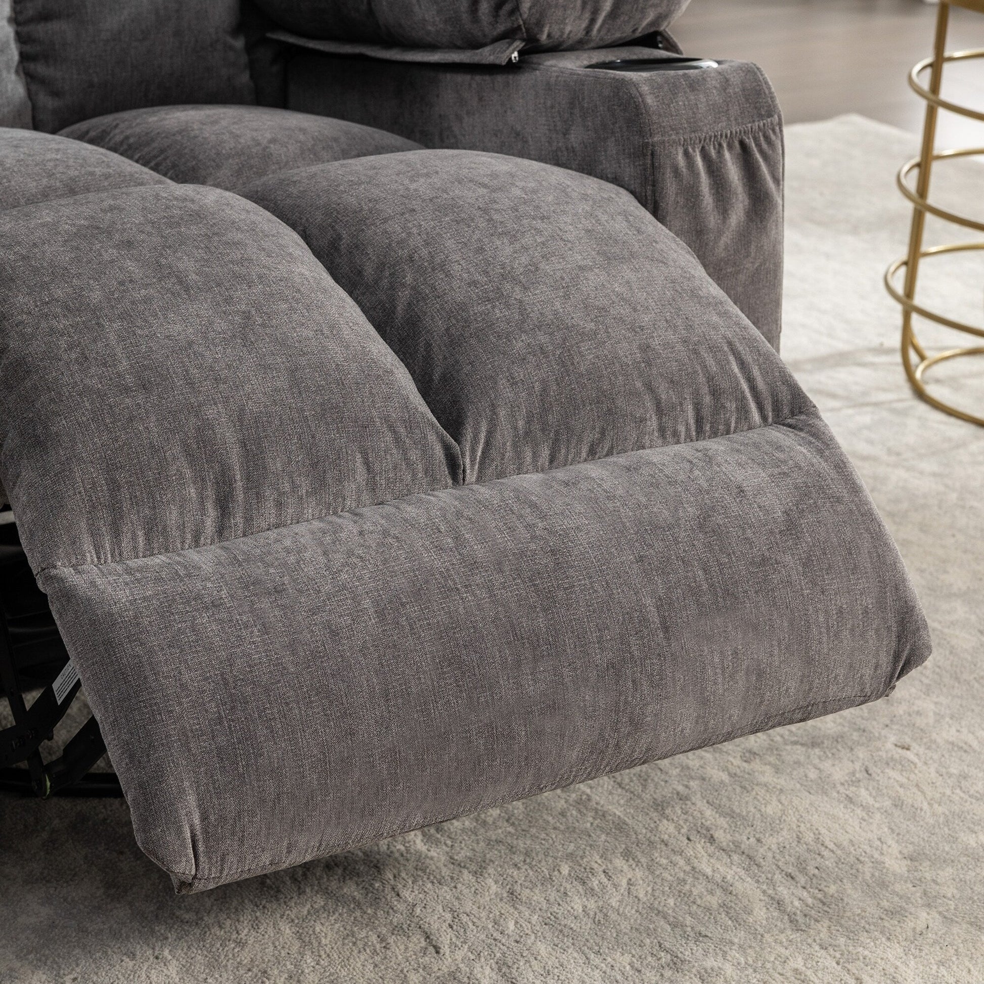 Grey Oversized Rocker Recliner with Vibration Massage, Heating, USB Port, Dual Cup Holders, and Side Pockets