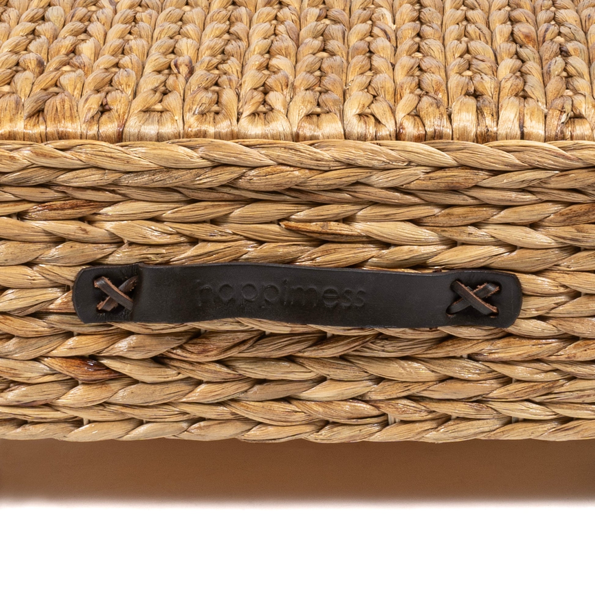 This storage bin has a beautiful natural tone from its hyacinth weave, and is decked out with white linen lining, adding bohemian style to any home; crafted by artisans, the color can be slightly different than shown