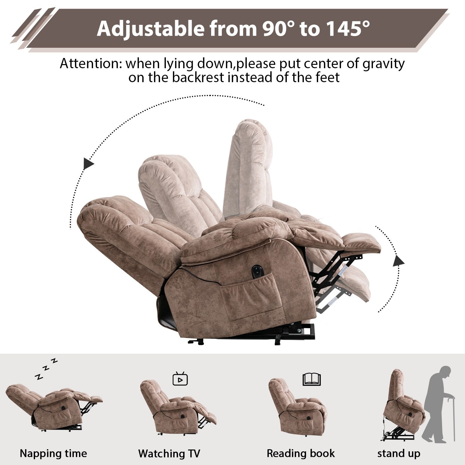 Looking for the perfect way to unwind after a long day? Look no further than this Microfiber Power Recliner and Lift Chair Single Sofa for Elderly. Designed with your comfort in mind, this chair lets you recline with ease thanks to its power recline and lift feature. With a wired controller that stores conveniently in an attached side pocket, you can smoothly transition from fully reclined to standing at the push of a button. The overstuffed pillow design on the back, seat, and armrest provides exceptional support and comfort. This chair's modern style and functionality make it ideal for the elderly or anyone with mobility issues.