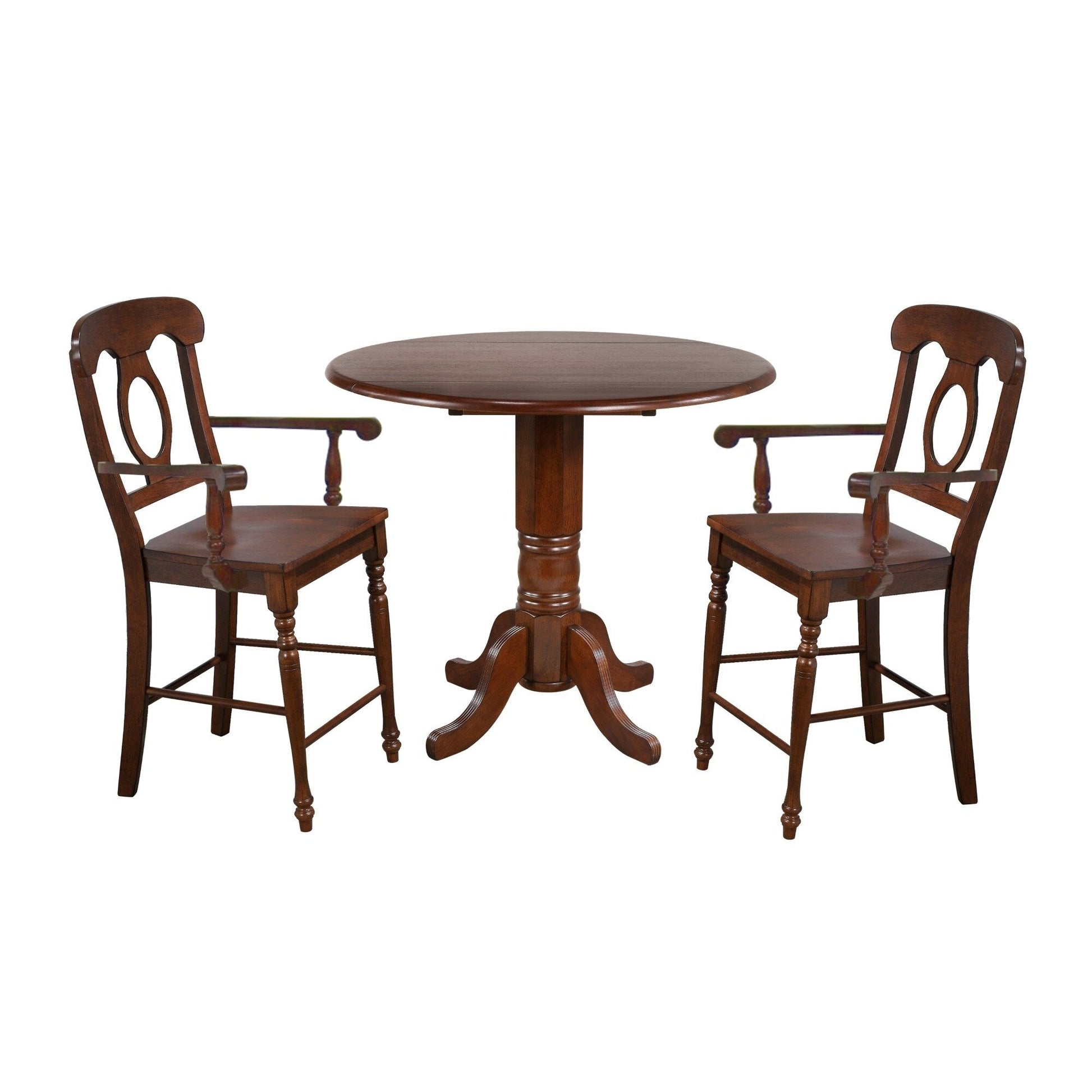 Product Features: Set of 2 high-back bar stools Comfortable sculpted seat Smooth distressed finish Comes with arms for added comfort Designed with a oval back design Sturdy wooden frame ensures durability Traditional turned accents for farmhouse appeal Sturdy legs provide stability For indoor use only