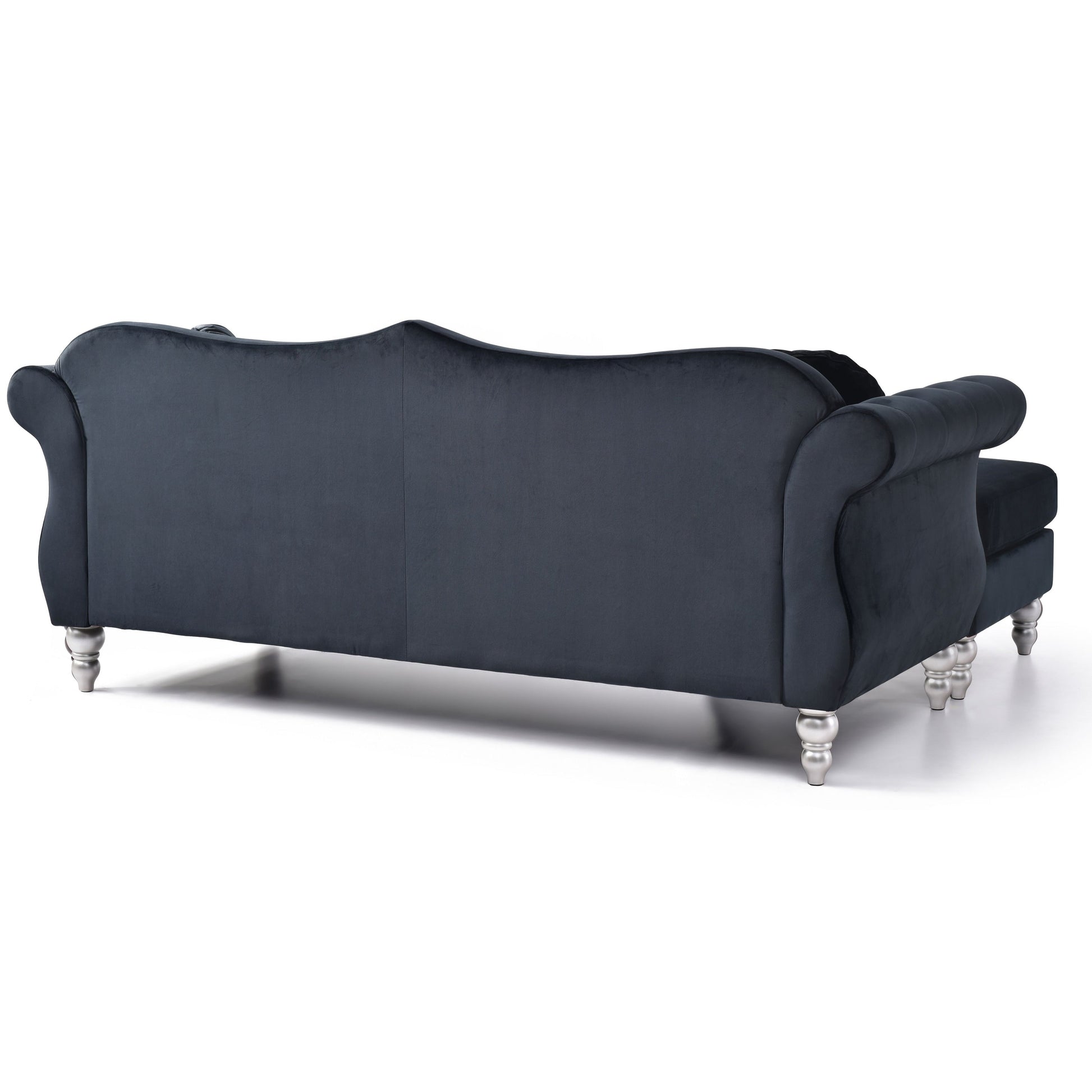The Hollywood Sofa with Chaise by Glory Furniture is a great way to add the perfect touch of style and comfort to your seating areas. The sofa is upholstered in soft velvet and the value you get for your money is just right. The sofa features a reversible chaise and highlights many different home décor styles. Snazz up your living space with this beautiful sofa chaise piece.