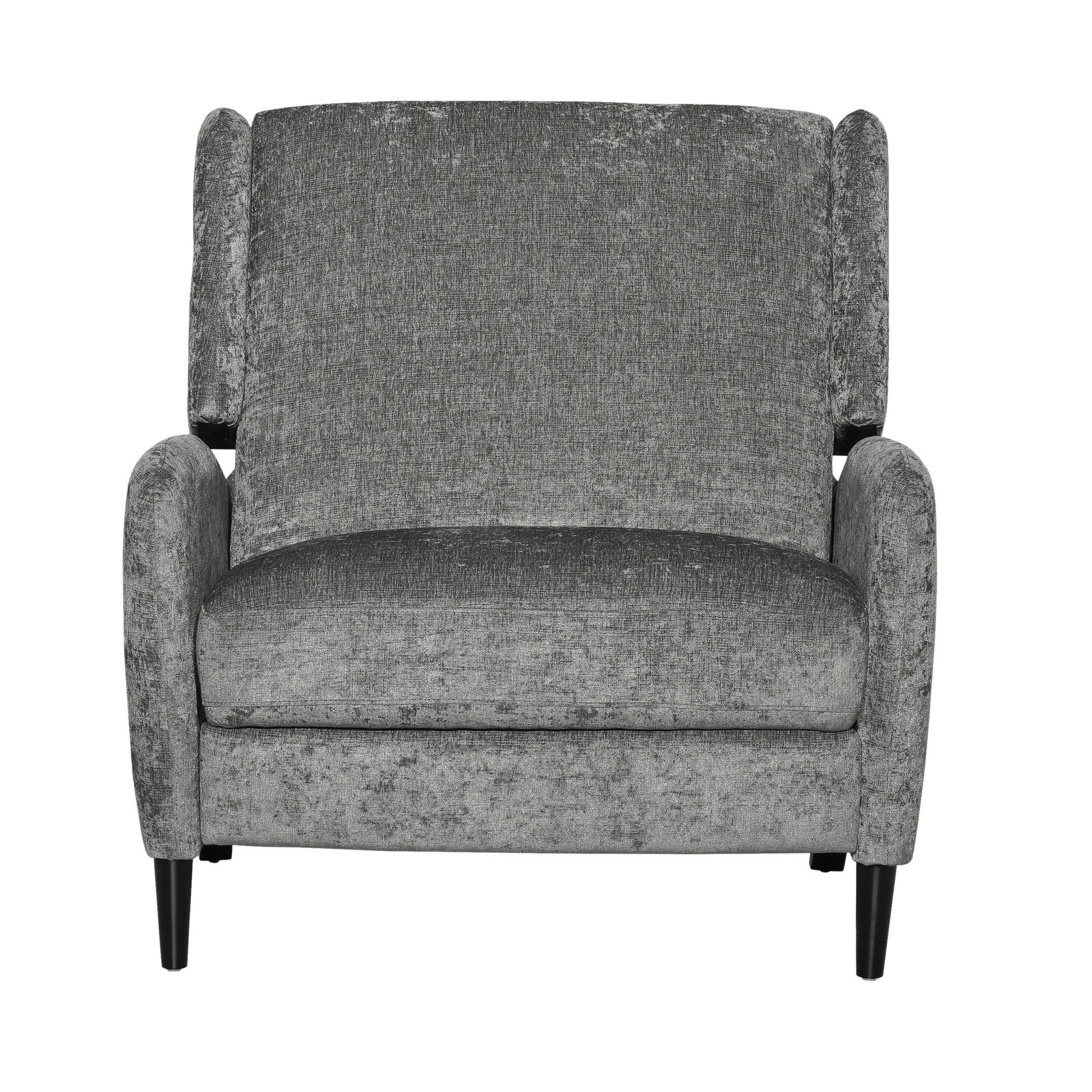 Howie Pushback Manual Recliner Chair, Dark Brown Wood, Textured Gray