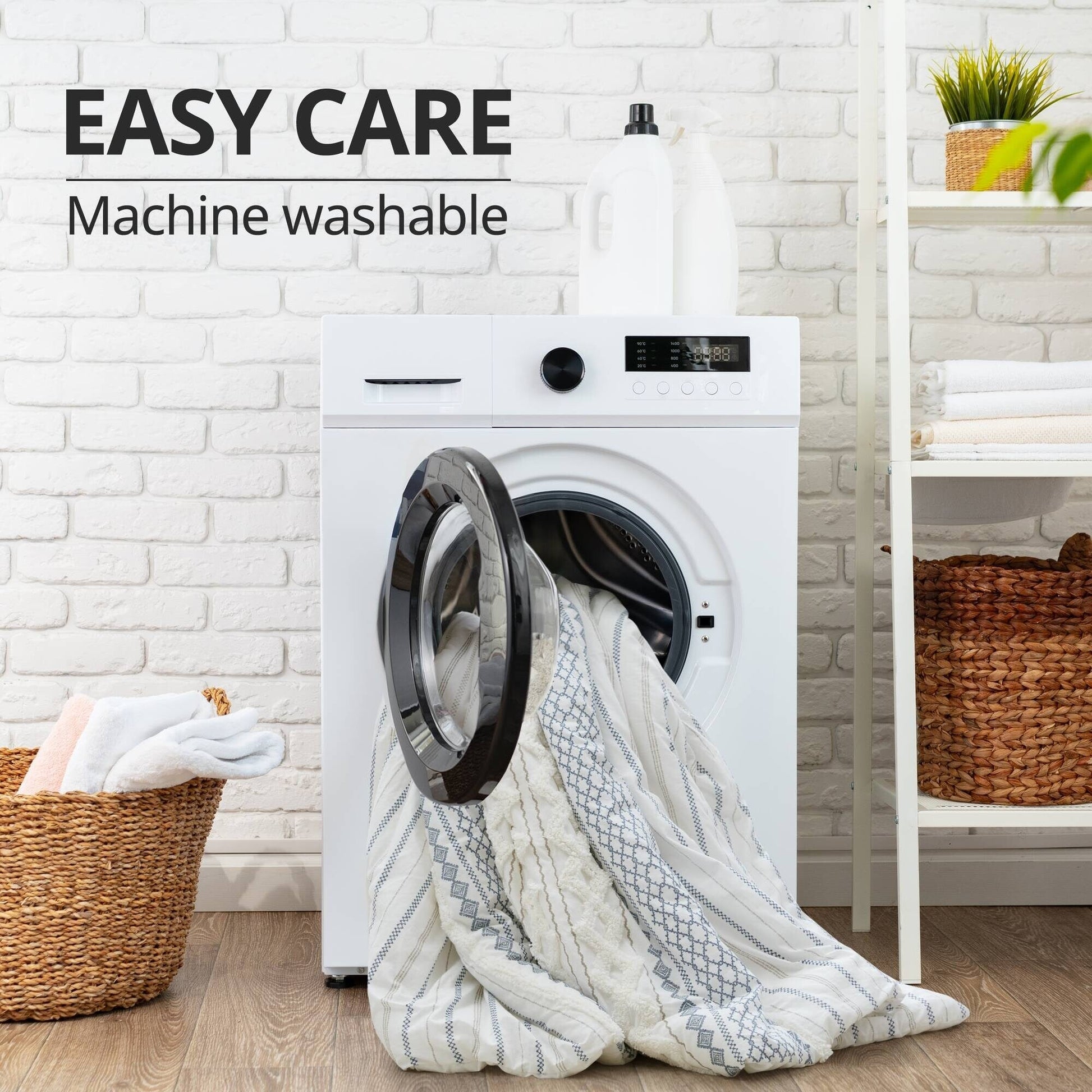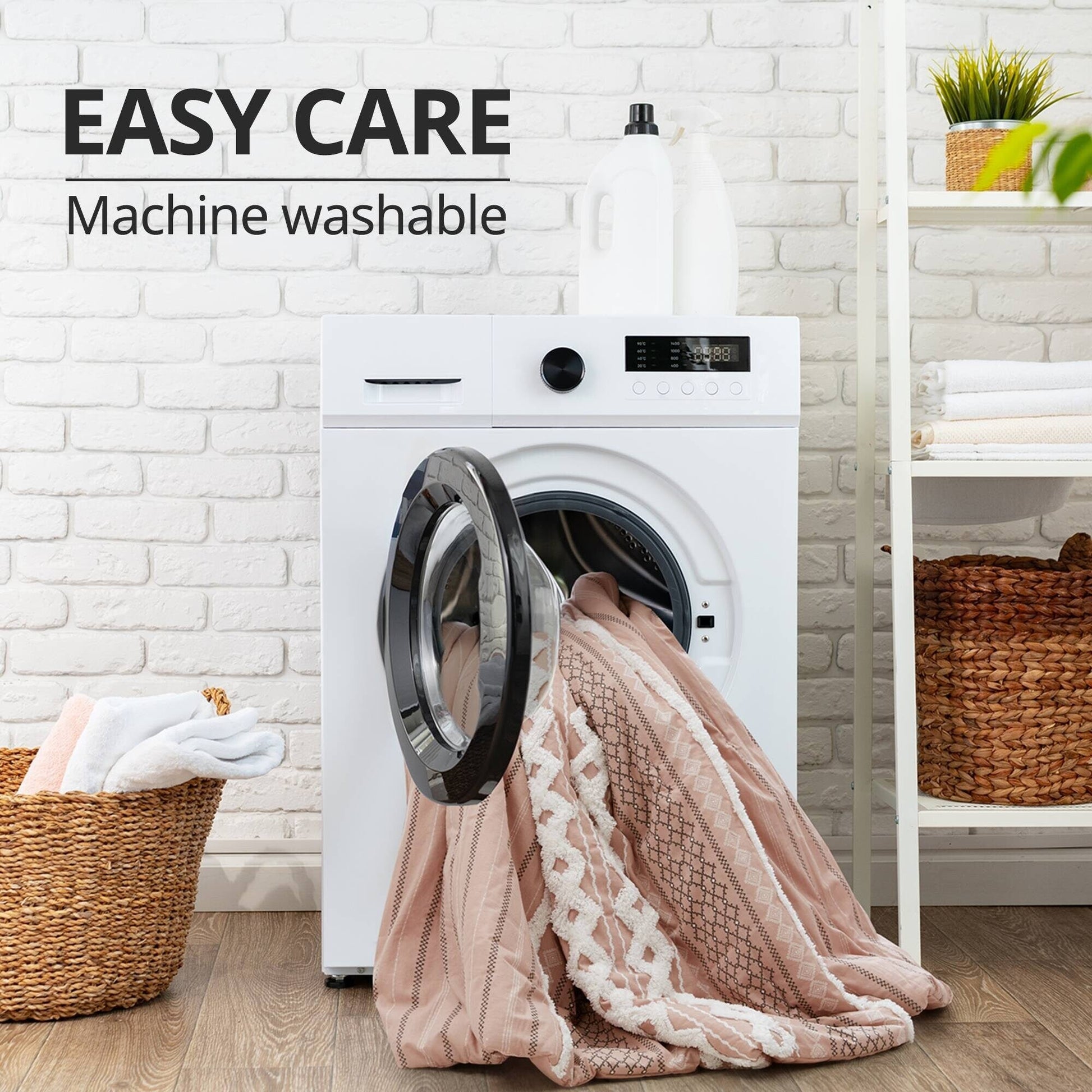 Machine washable, due to the nature of the chenille fabric, shedding will occur naturally from the tufted areas in the first 3-4 washes. Use a static roller to remove lint (see care label)