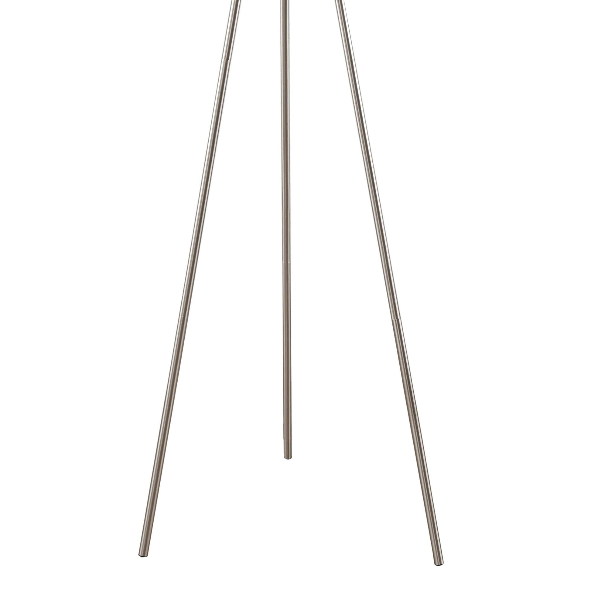 Metal tripod lamp with drum shade 60-percent iron, 20-percent glass, 20-percent fabric Base: 100-percent iron Shade Fabric: 60-percent polyester, 40-percent cotton 96 inches long clear power cord, on/off switch on cord Wattage 60W incandescent/13W CFL/9W LED; 1 Type A, 9W LED light bulb is included Not dimmable; Polarized plug Spot clean only Limited 2-year warranty Net weight: 6.8LBS