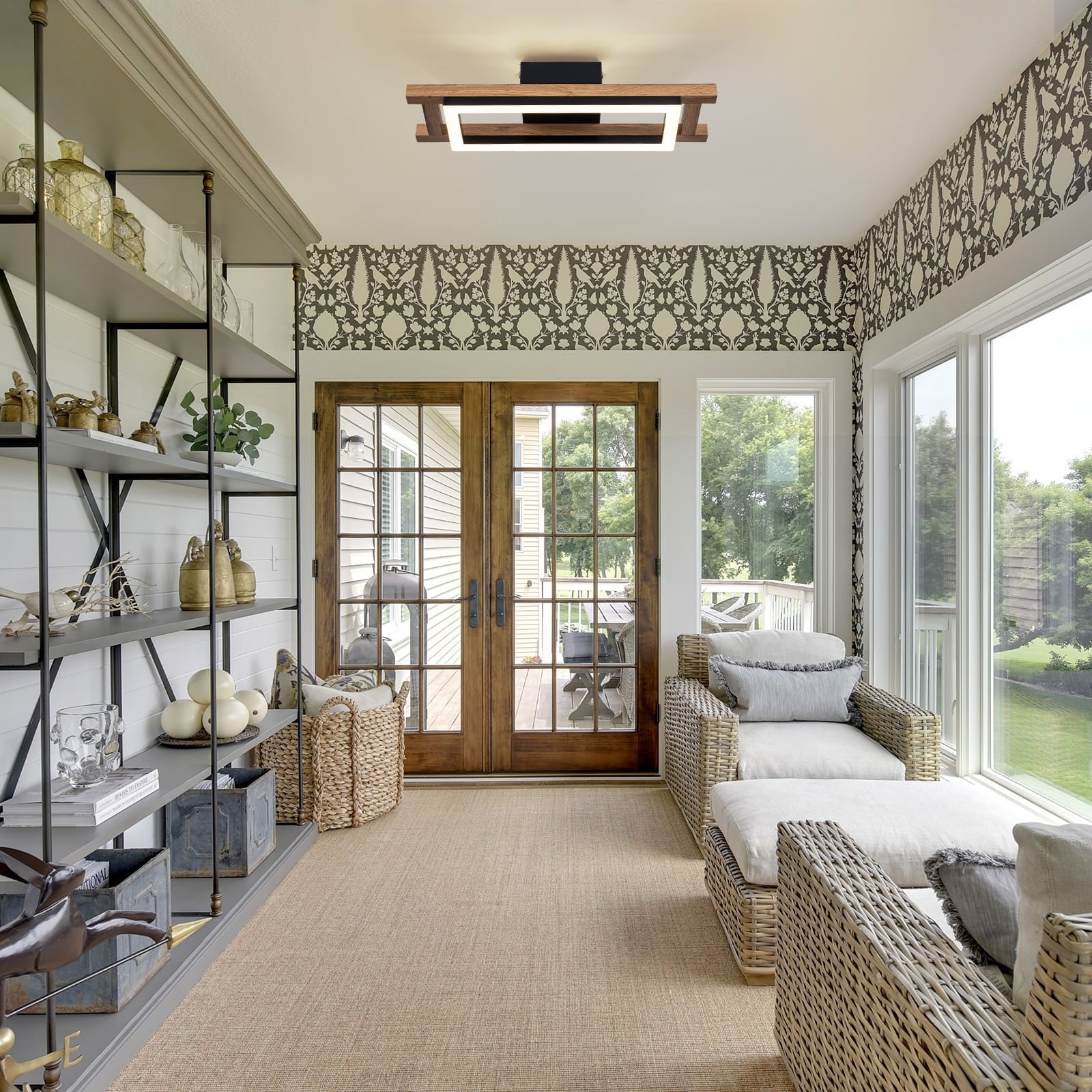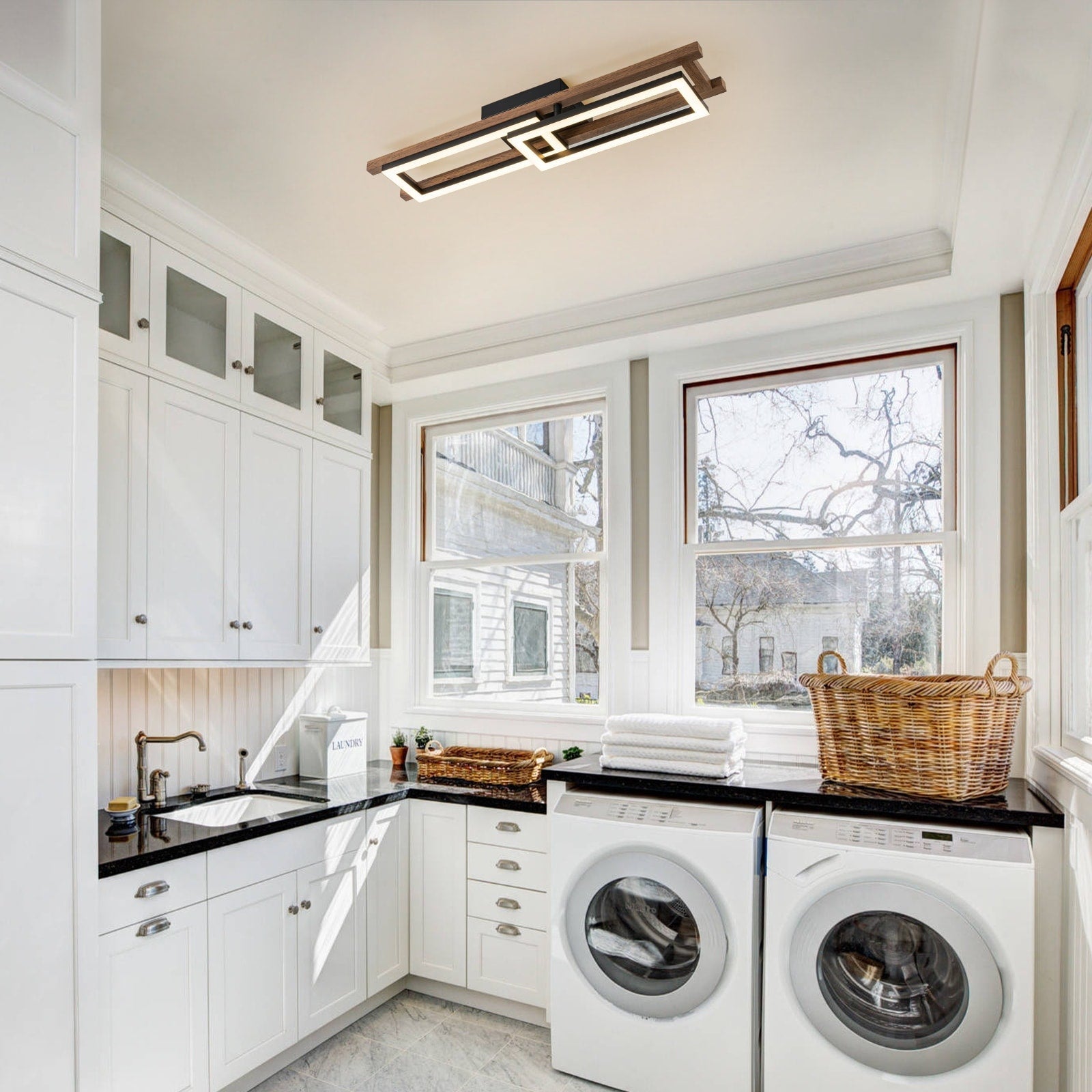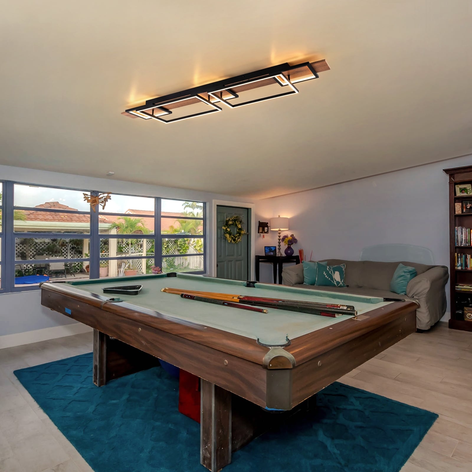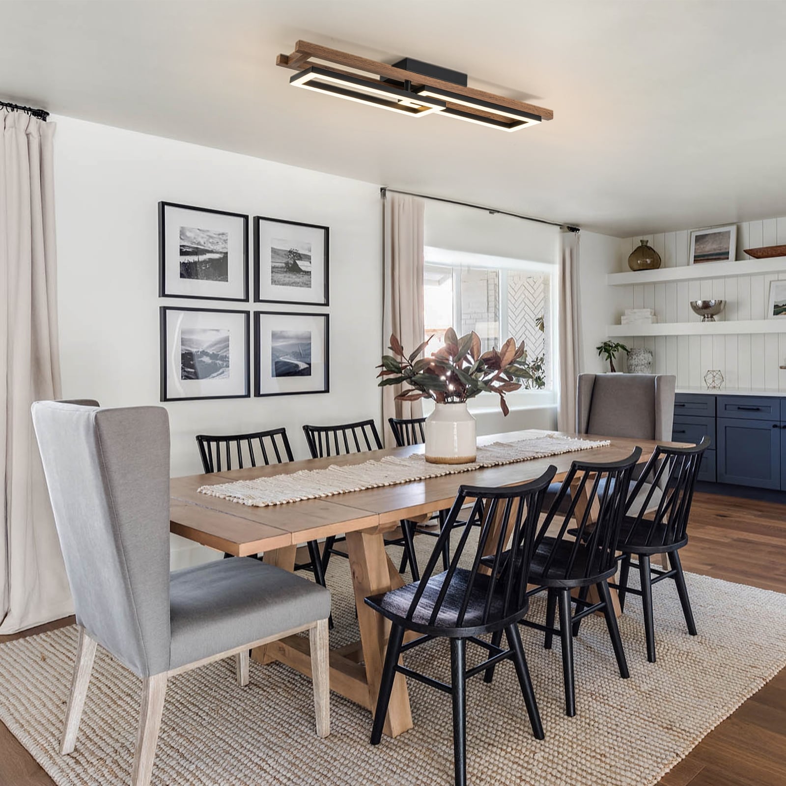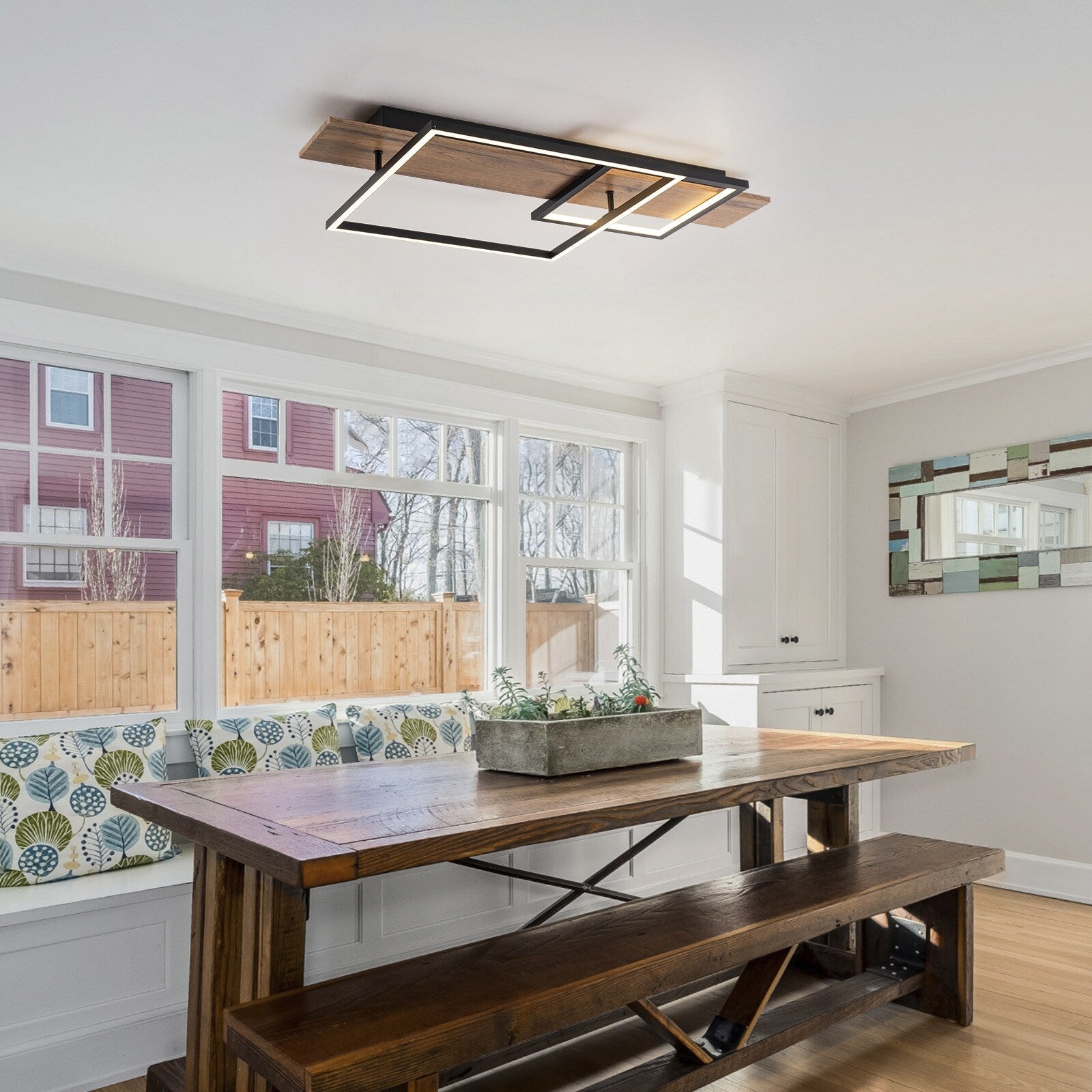 This modern LED ceiling light is the perfect addition to any room. Made of wood, it is both stylish and durable. Built-in LED will bring you a warm light, and you can adjust brightness by wall dimer based on what you want for lighting (Dimmer Not Included). With its sleek, modern design, this LED ceiling light is sure to be a conversation starter in any room.