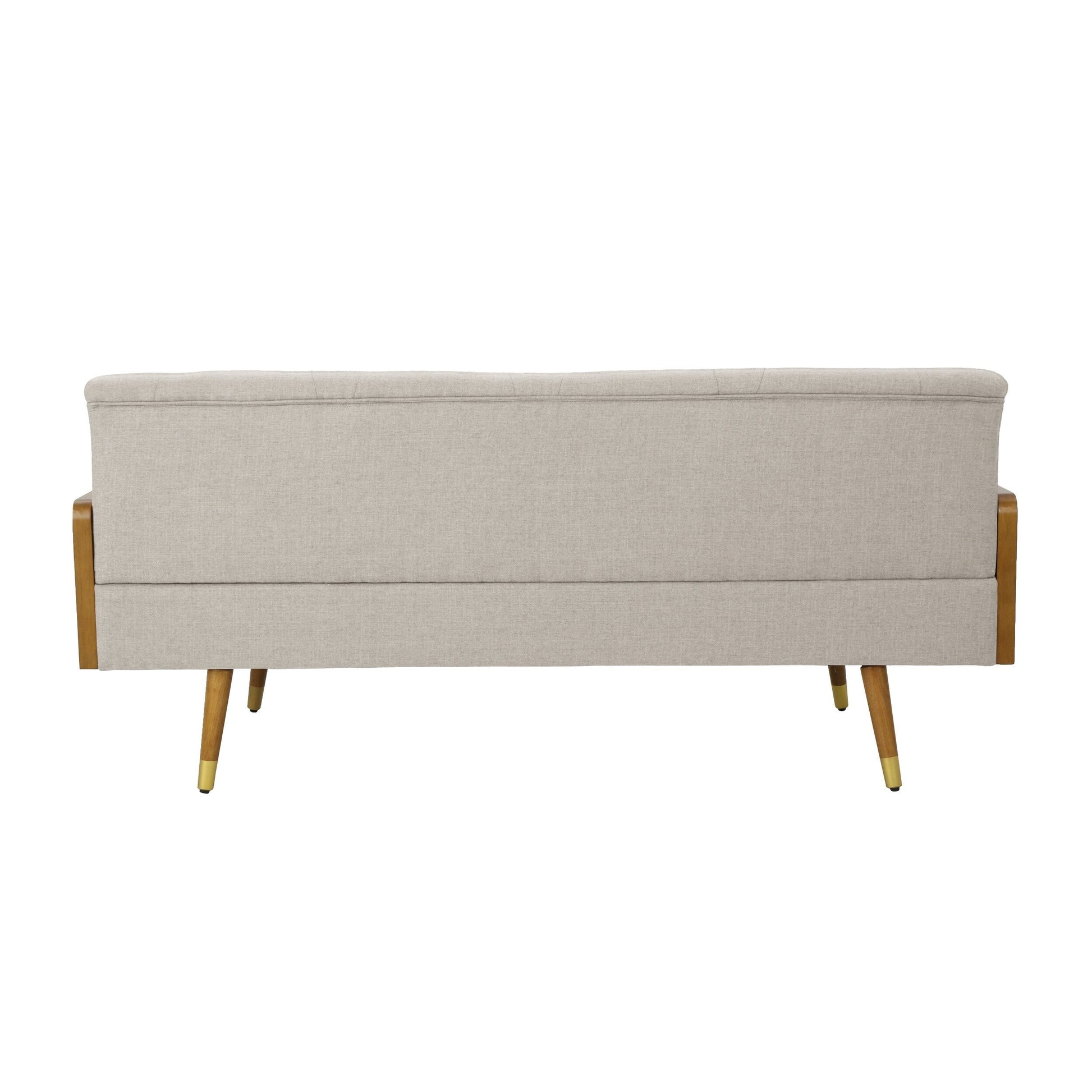 Upgrade your living room with the Jalon Mid-century Modern Tufted Fabric Sofa by Christopher Knight Home. With its charming mid-century design, this sofa boasts a perfect balance of wood accents and fabric upholstery, offering impeccable comfort and sophisticated style. The button tufted backrest with diamond stitching and waffle stitching in the seating creates a beautiful look, while the splayed legs with gold tips and rolled accent pillows add the perfect finishing touches. Available in light blush or navy blue, this refined sofa is sure to make any interior space into a stunning masterpiece.