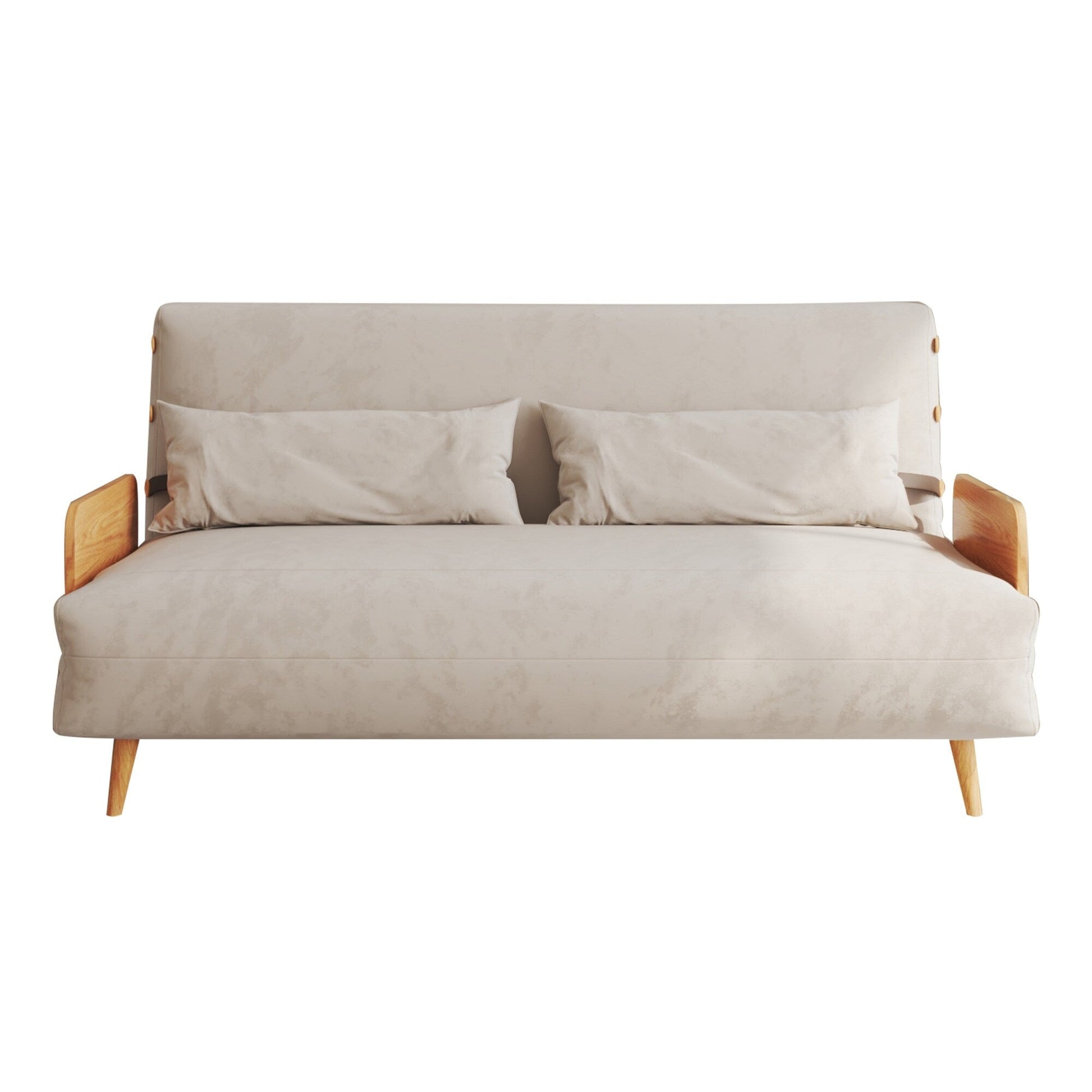Living room furniture multifunctional leisure sofa chair. The sofa with a side tea tray.59.1 inch length size, suitable for small apartment, does not take up space.It can be operated by one person, and can be easily turned into a bed by pulling it apart. The three-row button design, the pillow can be adjusted to different heights, and it is comfortable to lie on. The sofa is filled with high-resilience sponge, which is soft and comfortable, allowing you to easily feel the leisurely home life.
