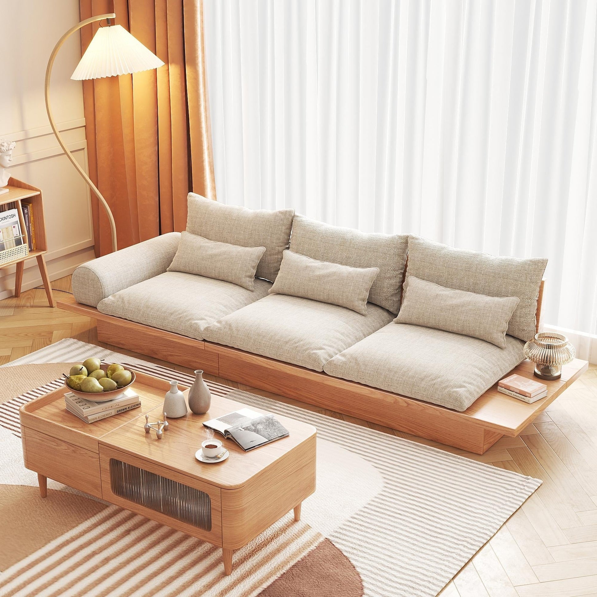 JASIWAY Cotton Line Beige Sofa With Wood Frame