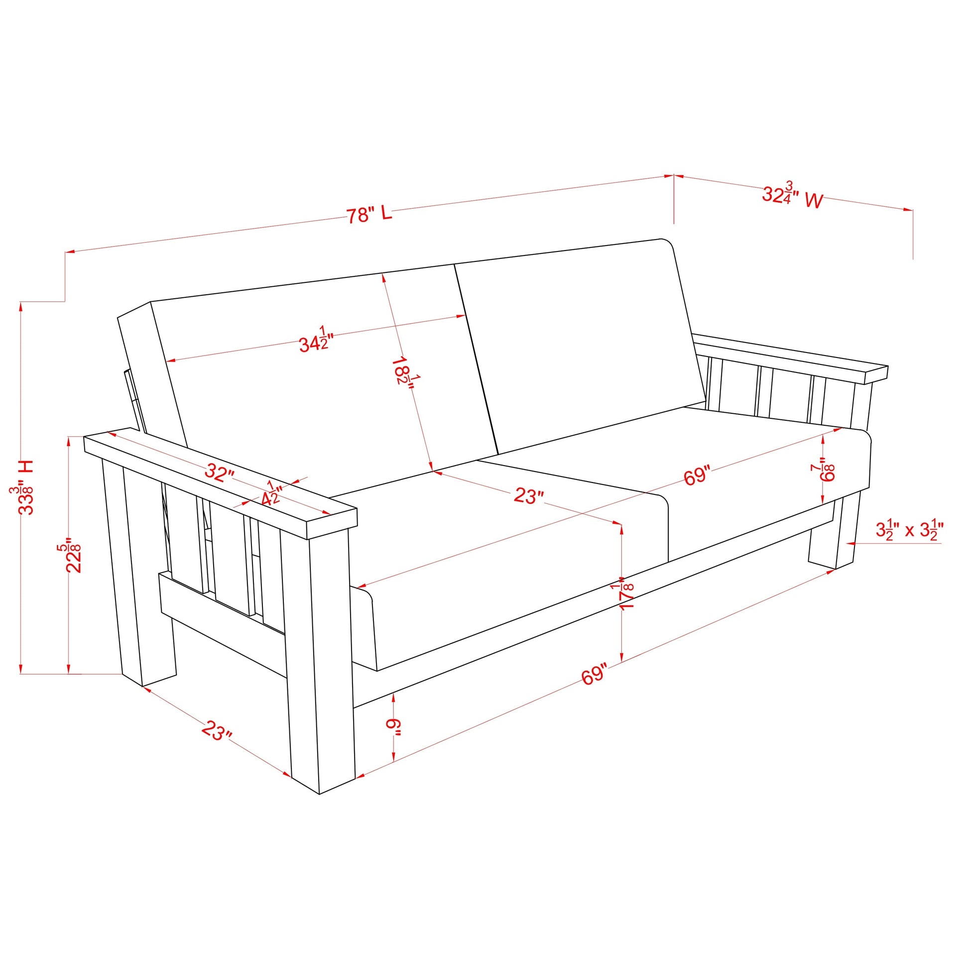 Overall: 33.38 inches high x 32.75 inches deep x 78 inches wide