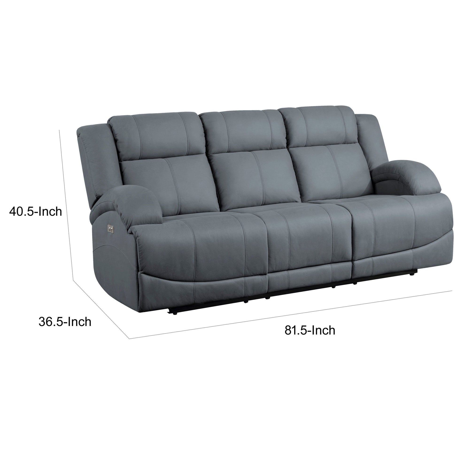 Kate 82 Inch Power Double Recliner Sofa, USB Ports, Blue Microfiber, Wood
