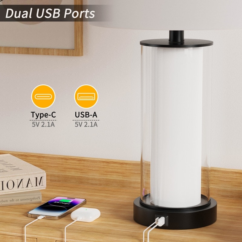 KAWOTI 23 inch Modern Glass Table Lamp Set with Night Light (set of 2)