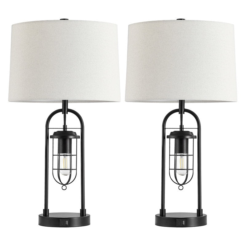 Add a touch of industrial-era detailing and modern style to your living space with the KAWOTI 26' Table Lamp. The bronze-finished metal strikes an arch silhouette with a lantern night light, offering cozy and soft light for your every sleepy night. This lamp features two USB ports built into the round base for charging your device. Compatible with an E26 base type 'A' bulb (not included), the lamp has an on-socket switch for the main light and night light.