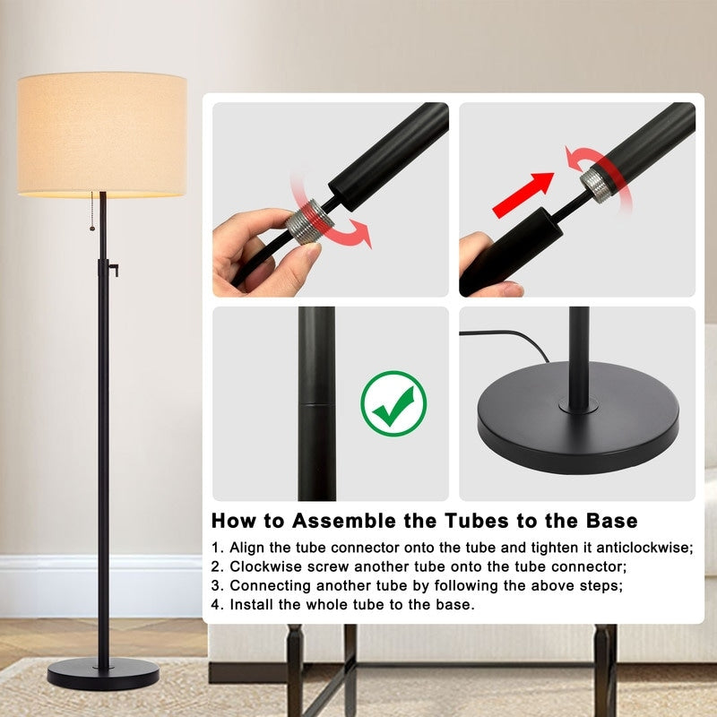 This classic and simple floor lamp serves as a minimalist in your room. The combination of color shade and the finish lamp body is harmonious with any room. The adjustable tube satisfies any height you need. Finish in a choice of black, antiqued brass and two-tone (all sold separately) providing options for different styles of décor. This simple floor lamp can calm your mood every day at home! Sturdy metal lamp body available is hand-painted in black/antique brass/black and brass/black and red finishes