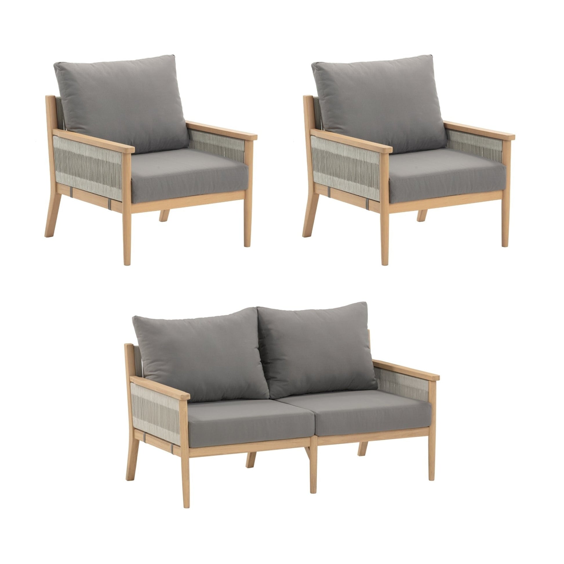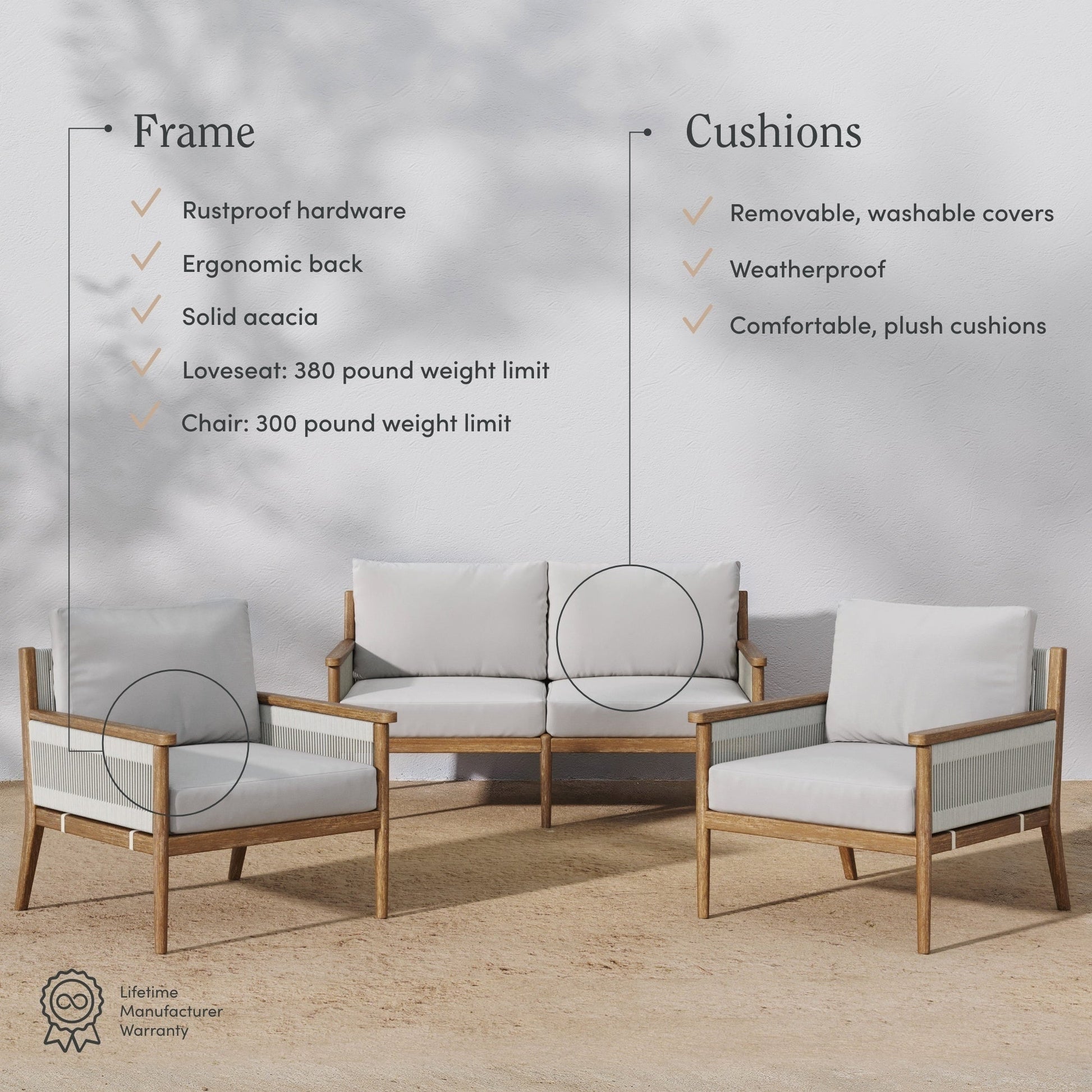 Kayden Bohemian 3-Piece Patio Conversation Set, Outdoor Loveseat and Chair Set with Solid Acacia Wood Frame